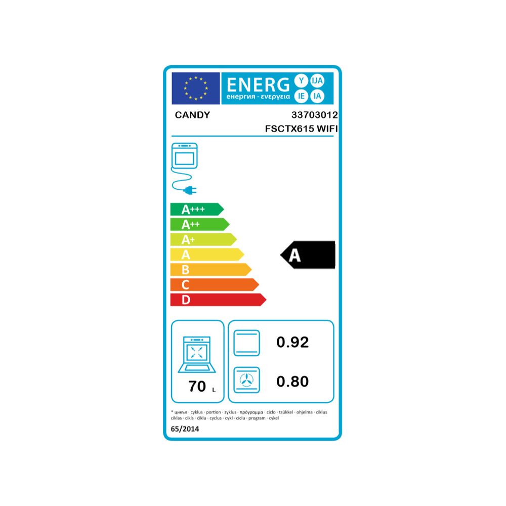 Φούρνος εντοιχιζόμενος Candy FSCTX615 WIFI χωρητικότητας 70lt, ενεργειακής κλάσης Α, με δυνατότητα σύνδεσης μέσω Wi-Fi και τεχνολογία υδρόλυσης AquaActiva για εύκολο καθαρισμό.