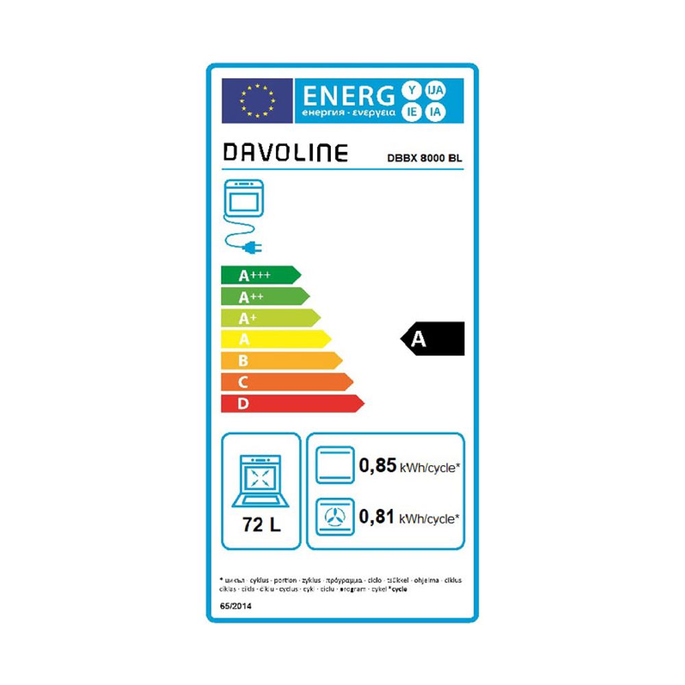 Φούρνος εντοιχιζόμενος Davoline DBBX 8000 BLACK χωρητικότητας 72 λίτρων, ενεργειακής κλάσης Α, με εύκολα αφαιρούμενη πόρτα που διευκολύνει το καθάρισμα.