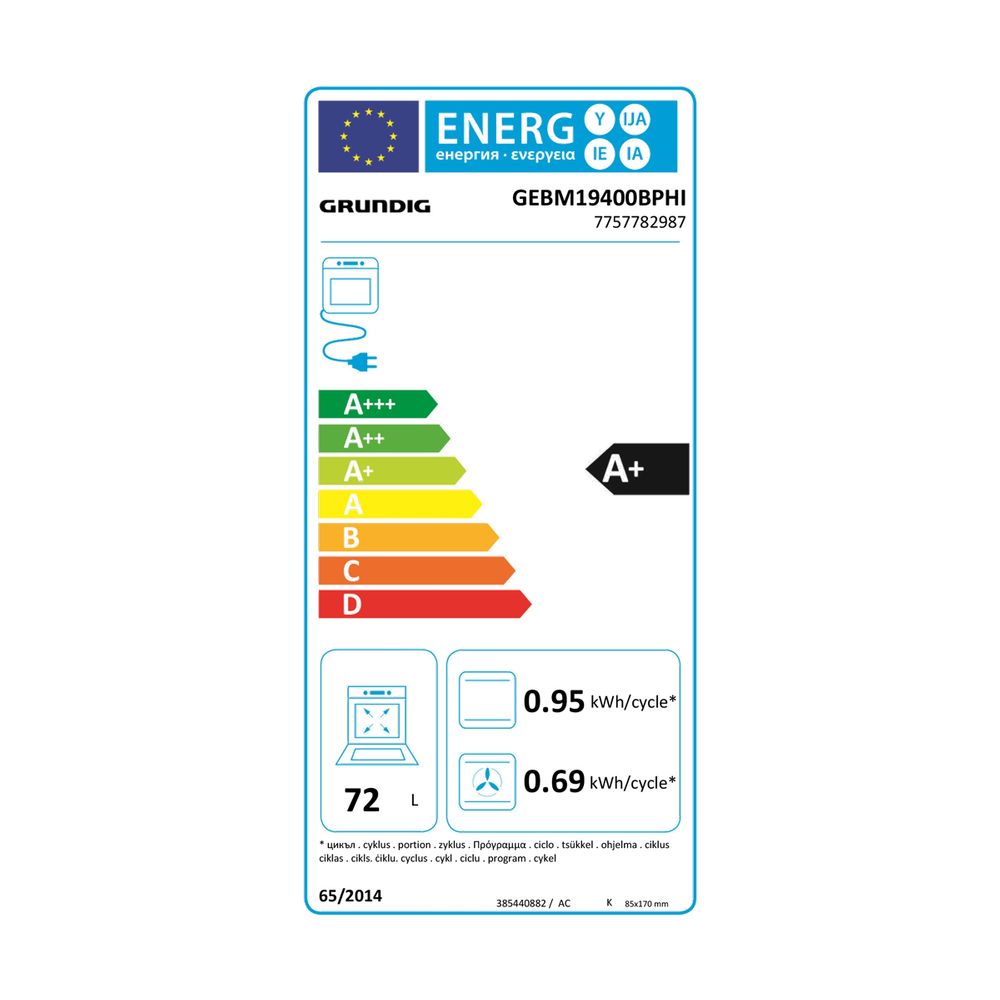 Εντοιχιζόμενος φούρνος GEBM19400BPHI από τη Grundig σε inox silver χρώμα, με χωρητικότητα 72lt, σύστημα κλεισίματος πόρτας Soft Open-Soft Close, πλάτους 59cm και δυνατότητα WiFi σύνδεσης.