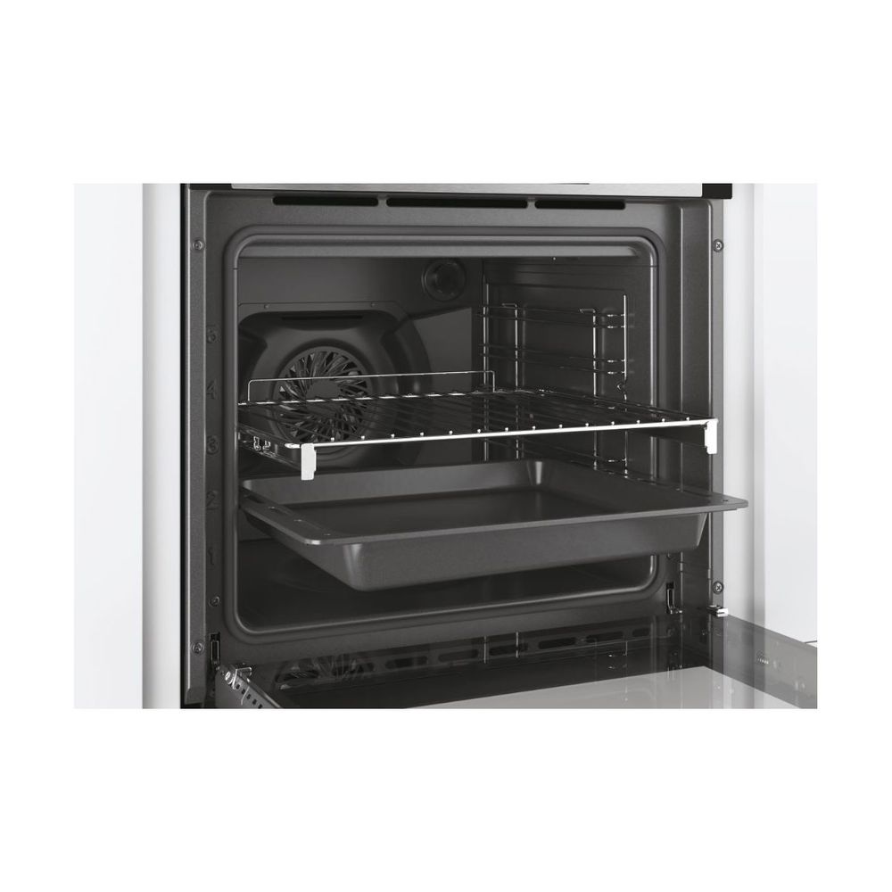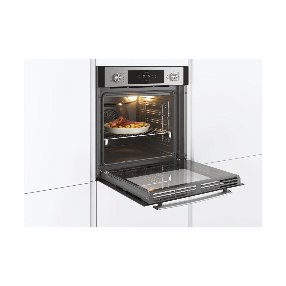 Διαθέτει σύστημα Soft Close για αθόρυβο κλείσιμο πόρτας, τηλεσκοπικούς βραχίονες για εύκολη χρήση ταψιών και σχαρών, πλαϊνές σχάρες στήριξης και δυνατότητα απομακρυσμένου ελέγχου μέσω της εφαρμογής hOn.