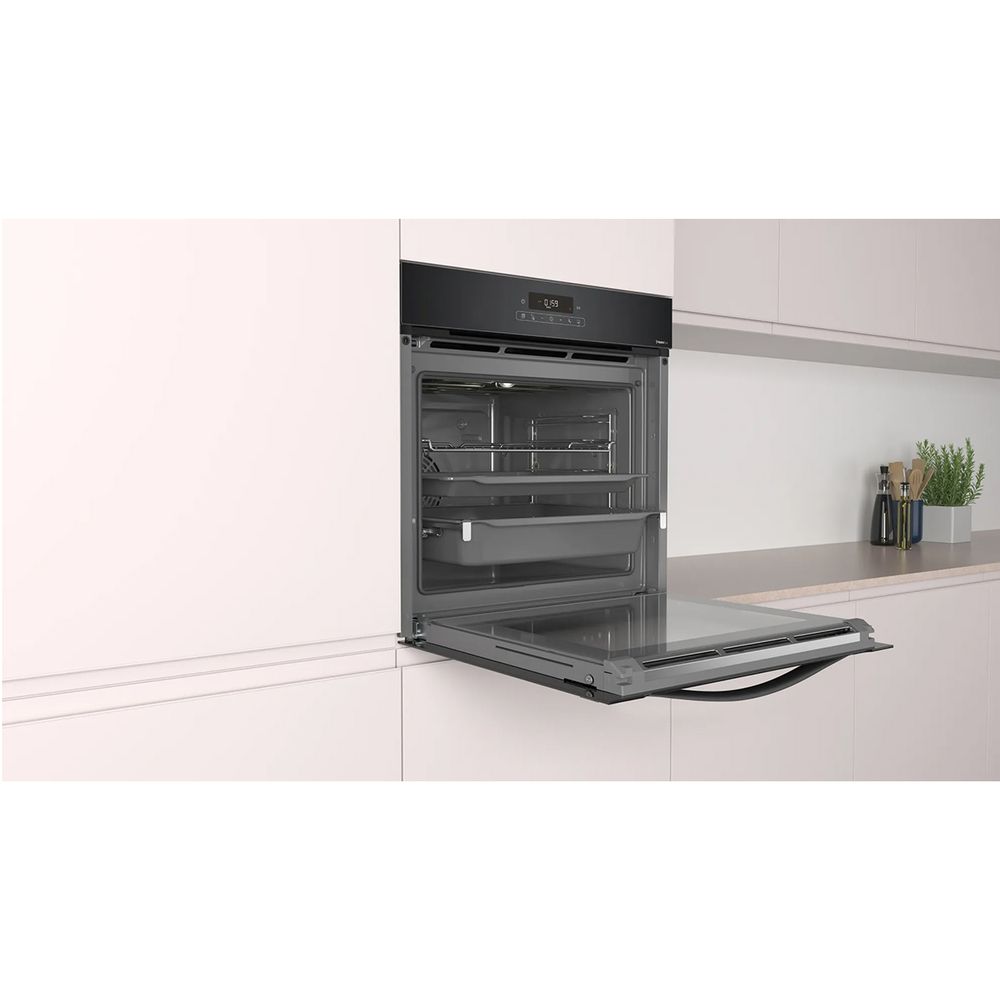Εντοιχιζόμενος φούρνος PH37M21B2 σε μαύρο χρώμα από την εταιρεία Pitsos με χωρητικότητα 71lt, με ηλεκτρονικό ρολόι για να προγραμματίζεις το μαγείρεμα του αγαπημένου σου φαγητού, τηλεσκοπικό μηχανισμό, πυρολυτικό αυτοκαθαρισμό καθώς και HydroPure, ένας εύκολος και έξυπνος τρόπος καθαρισμού του φούρνου σου.