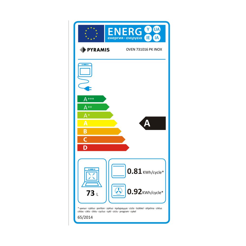 Εντοιχιζόμενος φούρνος Pyramis με χωρητικότητα 73 lt, 6 προγράμματα, εσωτερική επικάλυψη Easy to clean και διπλό κρύσταλλο πόρτας.