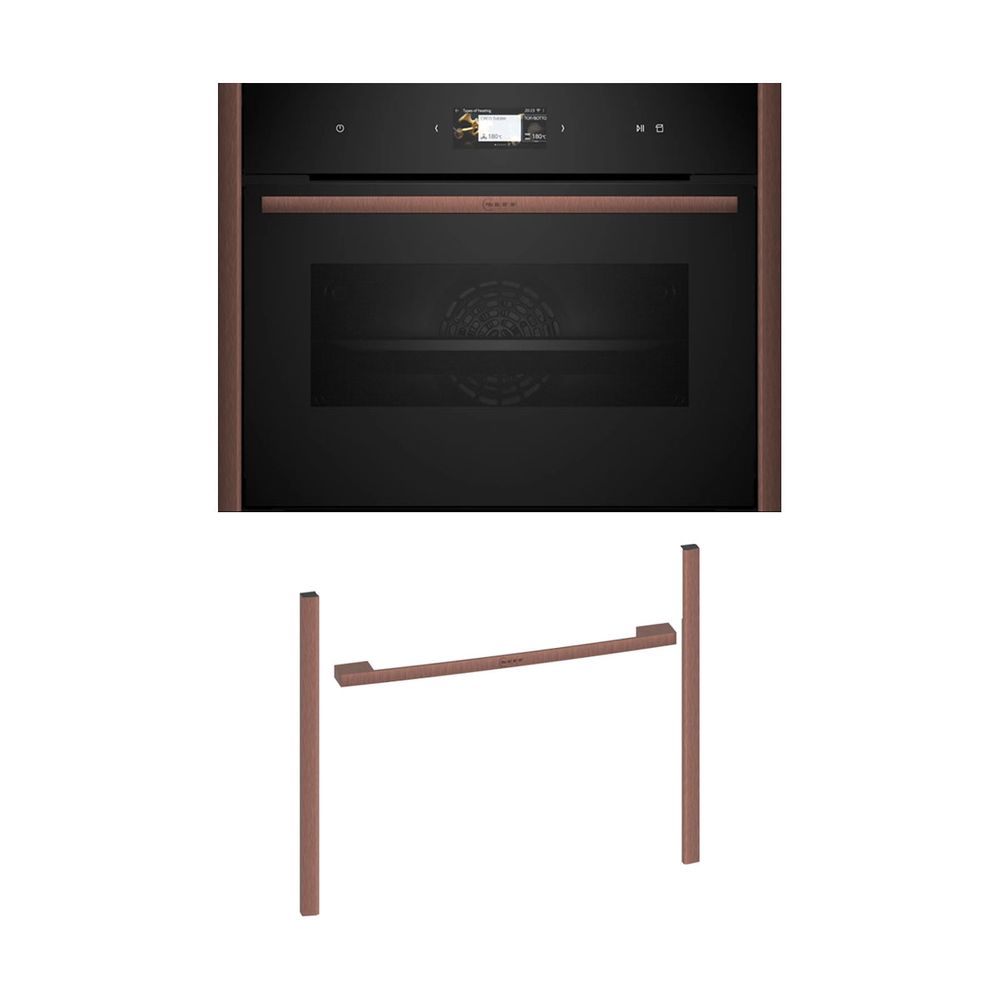 Σετ εντοιχισμού Neff το οποίο αποτελείται από τον Compact εντοιχιζόμενο φούρνο C29FS3AY0 και το Z9045BY0 45 cm Brushed Βronze Flex Design Kit.