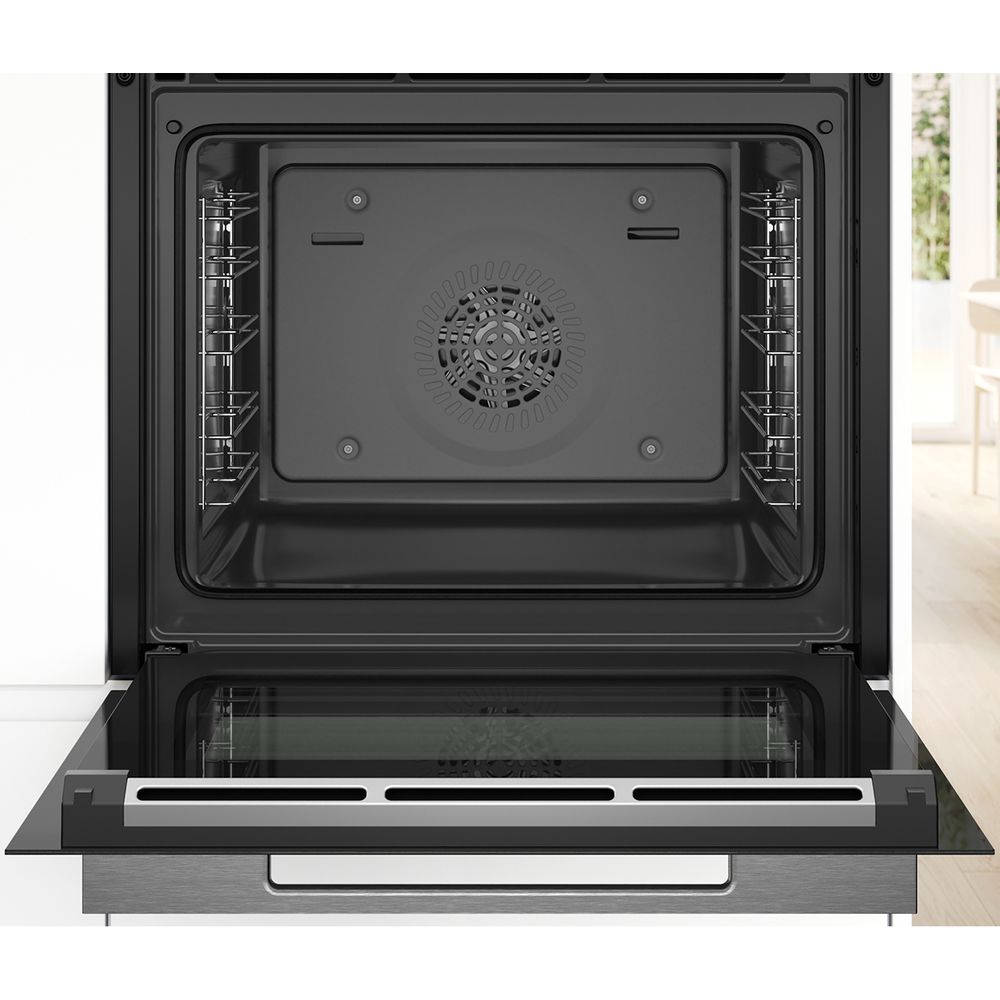 Φούρνος HBG7321W1 χωρητικότητας 71 lt, με 11 τρόπους ψησίματος, λειτουργία Air Fry, οθόνη αφής TFT, δακτύλιο ψηφιακού ελέγχου, αυτοκαθαριζόμενη επιφάνεια επιφάνεια και σύστημα καθαρισμού Easy Clean.