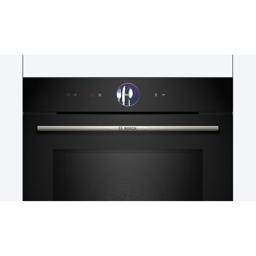 Εντοιχιζόμενος φούρνος με μικροκυμάτα, ψηφιακό δακτύλιο ελέγχου και οθόνη αφής TFT για να απολαμβάνεις νόστιμα ψητά και φαγητά σε πολύ σύντομο χρονικό διάστημα. Είναι συμβατός με Home Connect για έλεγχο μέσω της εφαρμογής.