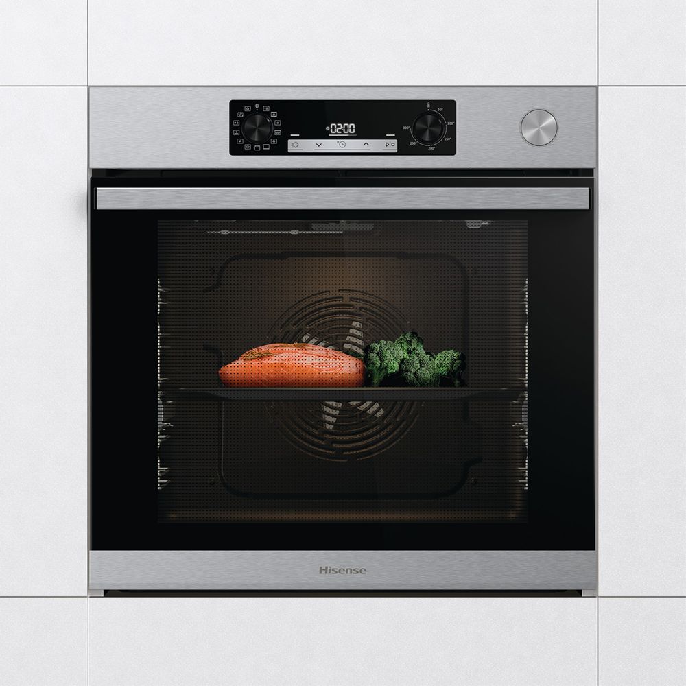 Εντοιχιζόμενος φούρνος Hisense χωρητικότητας 77 λίτρων, με πολλά επίπεδα για να μαγειρεύεις ταυτόχρονα διαφορετικά φαγητά, και 13 αυτόματα προγράμματα. Φτιάξε εύκολα σπιτικές πίτσες και ψήσε ομοιόμορφα ό,τι επιθυμείς. Επιτρέπει το μαγείρεμα στον ατμό για υγιεινά και νόστιμα φαγητά. Επιπλέον, ο ατμός καθαρίζει τον φούρνο με ευκολία.