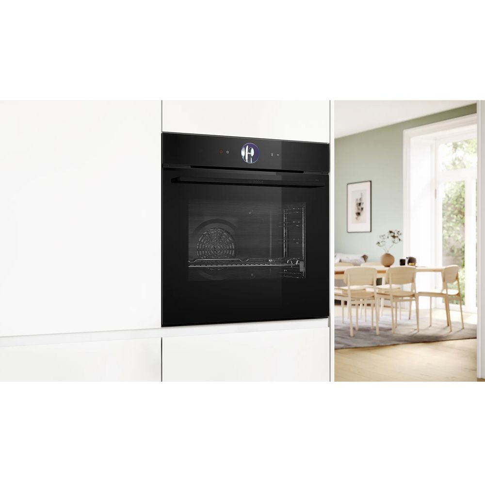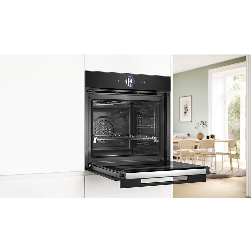 Διαθέτει τις λειτουργίες Assist για αυτόματα γεύματα, τεχνολογία 4D hotair, απαλό κλείσιμο πόρτας SoftClose, απαλό άνοιγμα πόρτας SoftOpen, βοηθό φούρνου με φωνητικό έλεγχο, φωτισμό LED, λειτουργία διατήρησης θερμοκρασίας