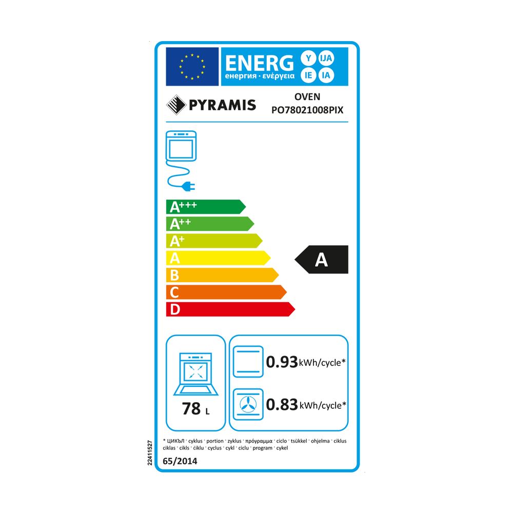 Εντοιχιζόμενος φούρνος Pyramis PO78021008PIX με χωρητικότητα 78 lt, 8 προγράμματα, αποσπώμενο κρύσταλλο πόρτας, Soft Close, εσωτερική επικάλυψη Easy to clean και σύστημα ψύξης.