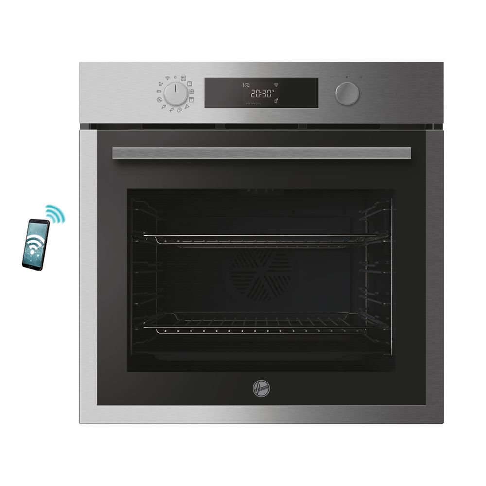 Φούρνος εντοιχιζόμενος Hoover HO6 UP5B3YTX με χωρητικότητα 78 lt, 12 τρόπους ψησίματος, ψηφιακή οθόνη αφής, τεχνολογία No Pre-Heat, σύστημα Soft Close και δυνατότητα απομακρυσμένου ελέγχου μέσω Wi-Fi.