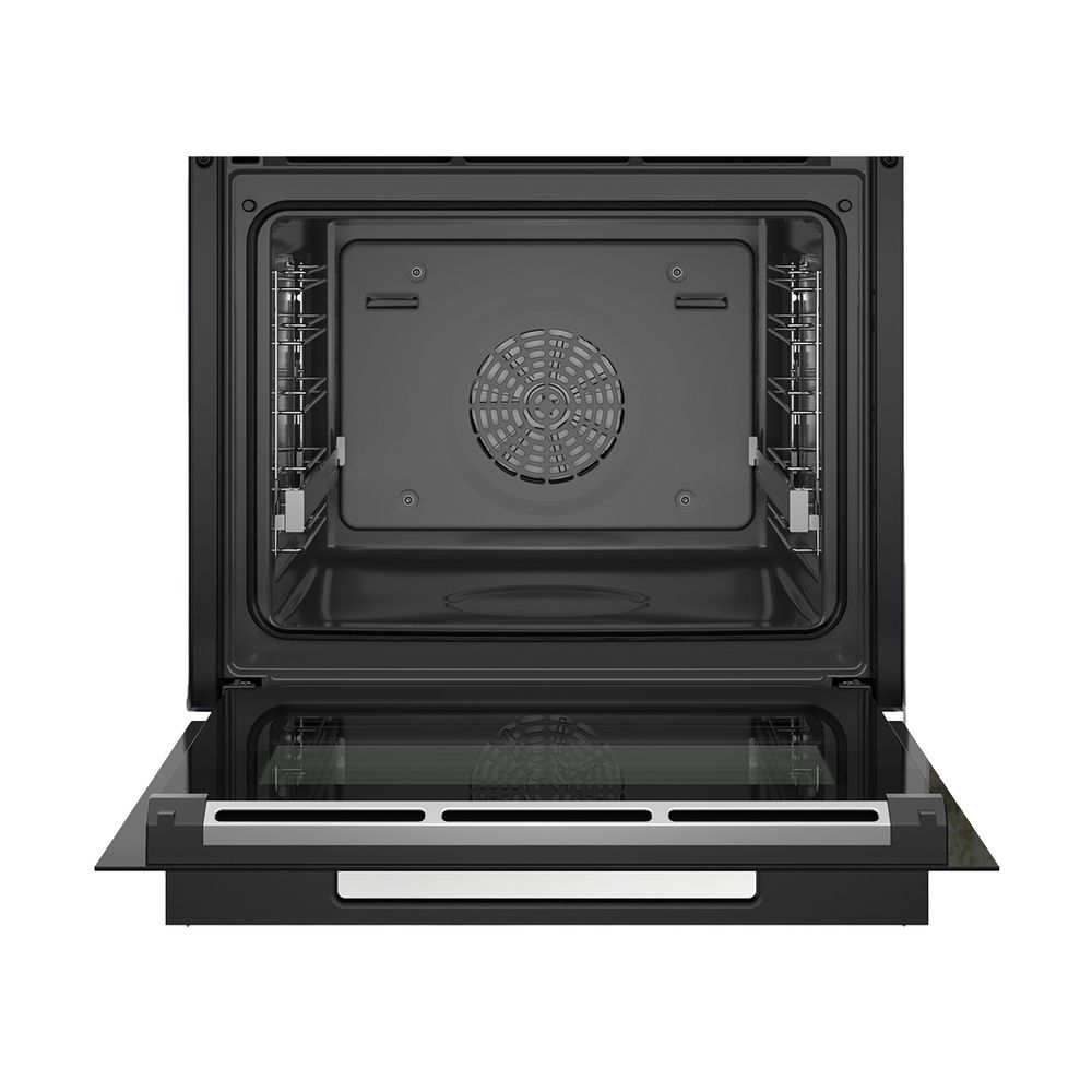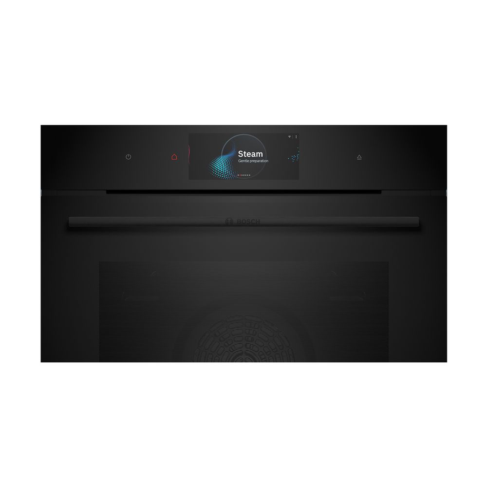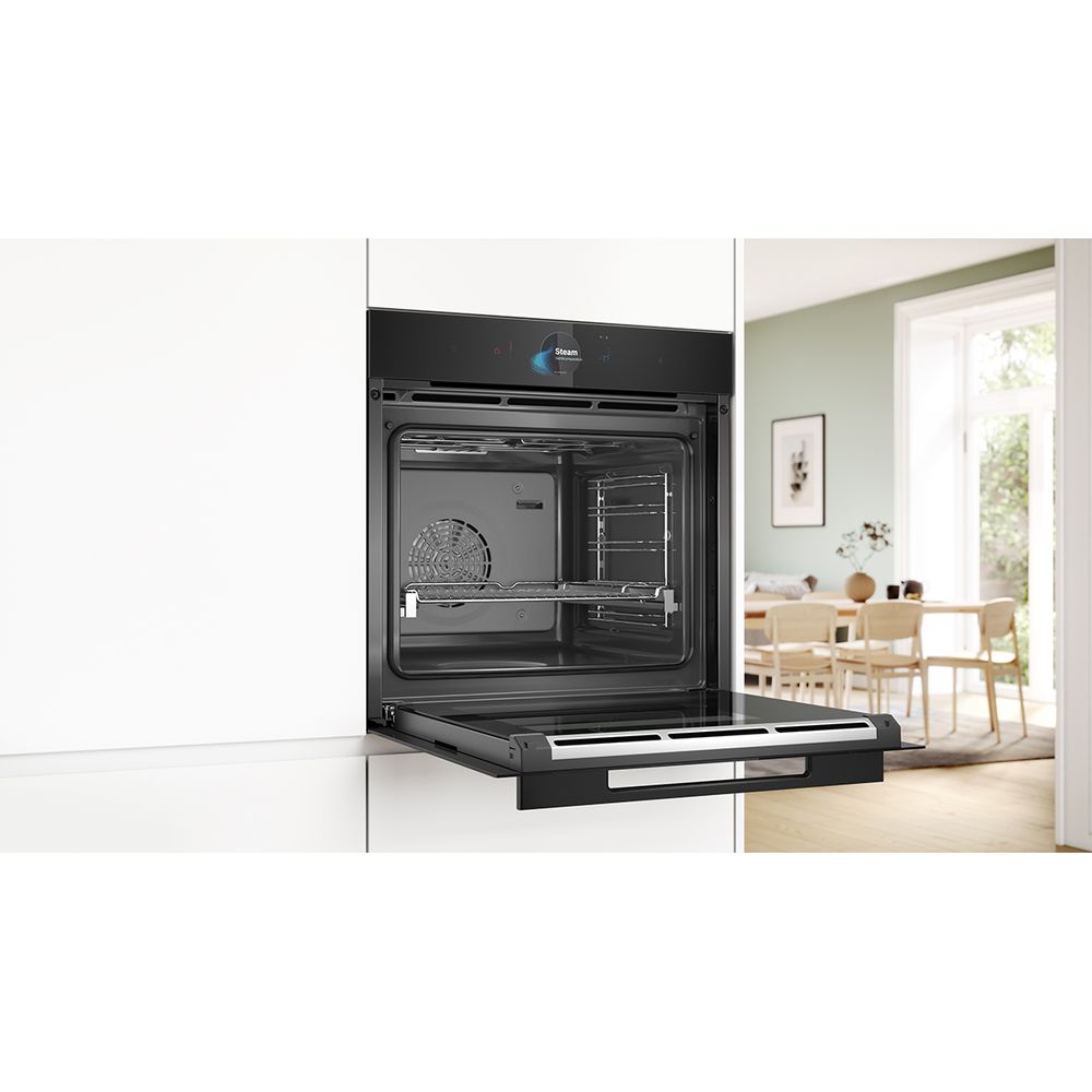 Εντοιχιζόμενος φούρνος Bosch Accent Line HSG938EB1 με χωρητικότητα 71 λίτρα, οθόνη αφής TFT Pro, δακτύλιο ψηφιακού ελέγχου, λειτουργία Air Fry για τέλεια τηγανιτά φαγητά, λειτουργία Ατμού Plus για ήπιο και υγιεινό ψήσιμο του φαγητού και εύκολο καθάρισμα χάρη στο πρόγραμμα καθαρισμού EcoClean.