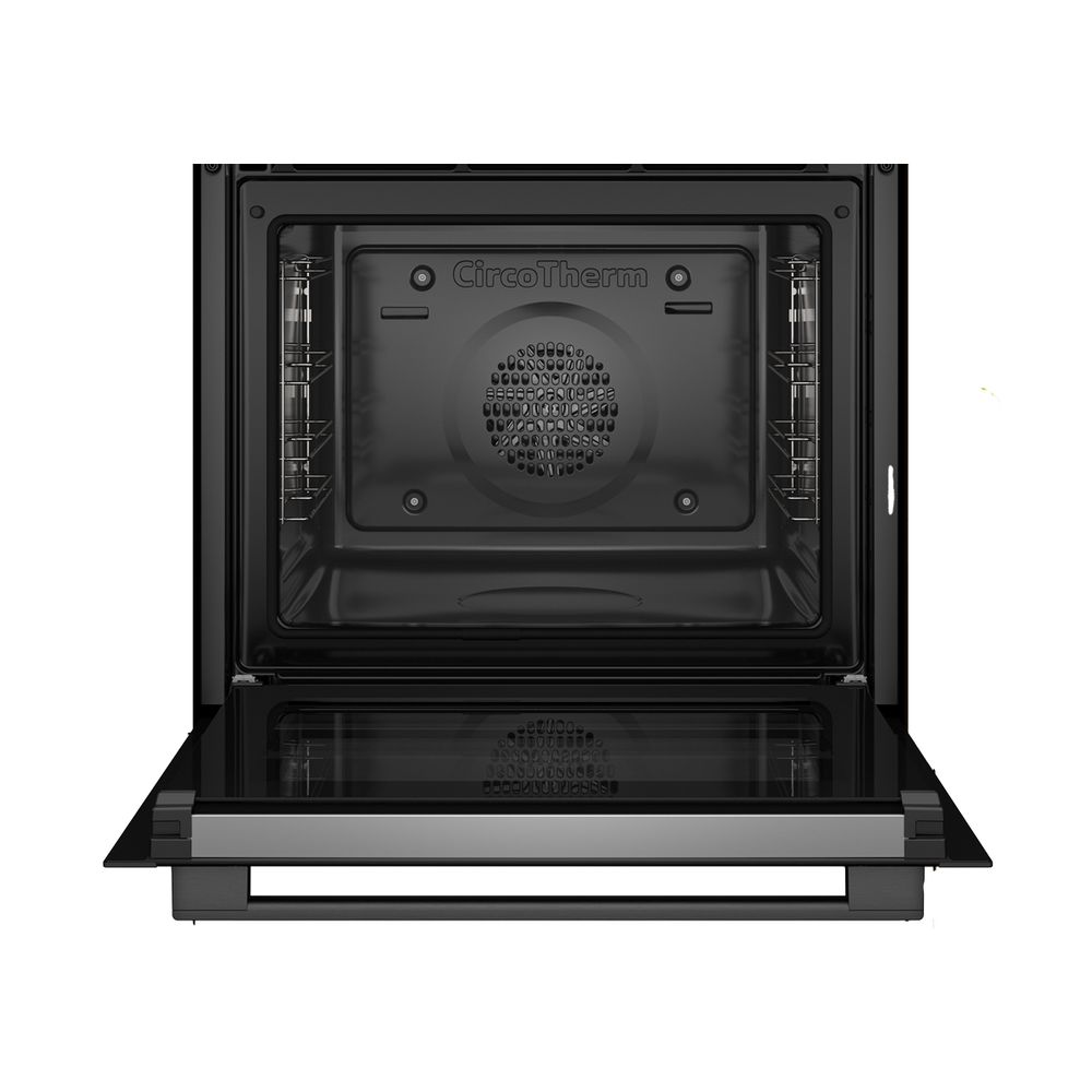 Εντοιχιζόμενος φούρνος Neff με χωρητικότητα 71lt, τεχνολογία CircoTherm για να ψήνεις σε έως και 3 επίπεδα ταυτόχρονα, πυρόλυση για εύκολο καθαρισμό, οθόνη LCD για εύκολη ανάγνωση και μηχανισμούς Soft Close και Soft Opening για την αποφυγή κραδασμών της πόρτας.