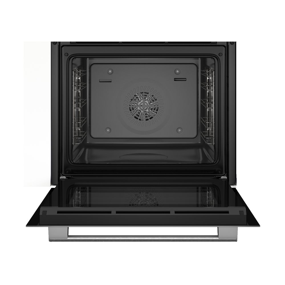 Εντοιχιζόμενος φούρνος Bosch με χωρητικότητα 71lt, τεχνολογία 3D Hotair για ομοιόμορφη κατανομή της θερμότητας, EcoClean Direct επίστρωση για εύκολο καθάρισμα, βαθμίδα για πίτσα και LED οθόνη με κουμπί ελέγχου.