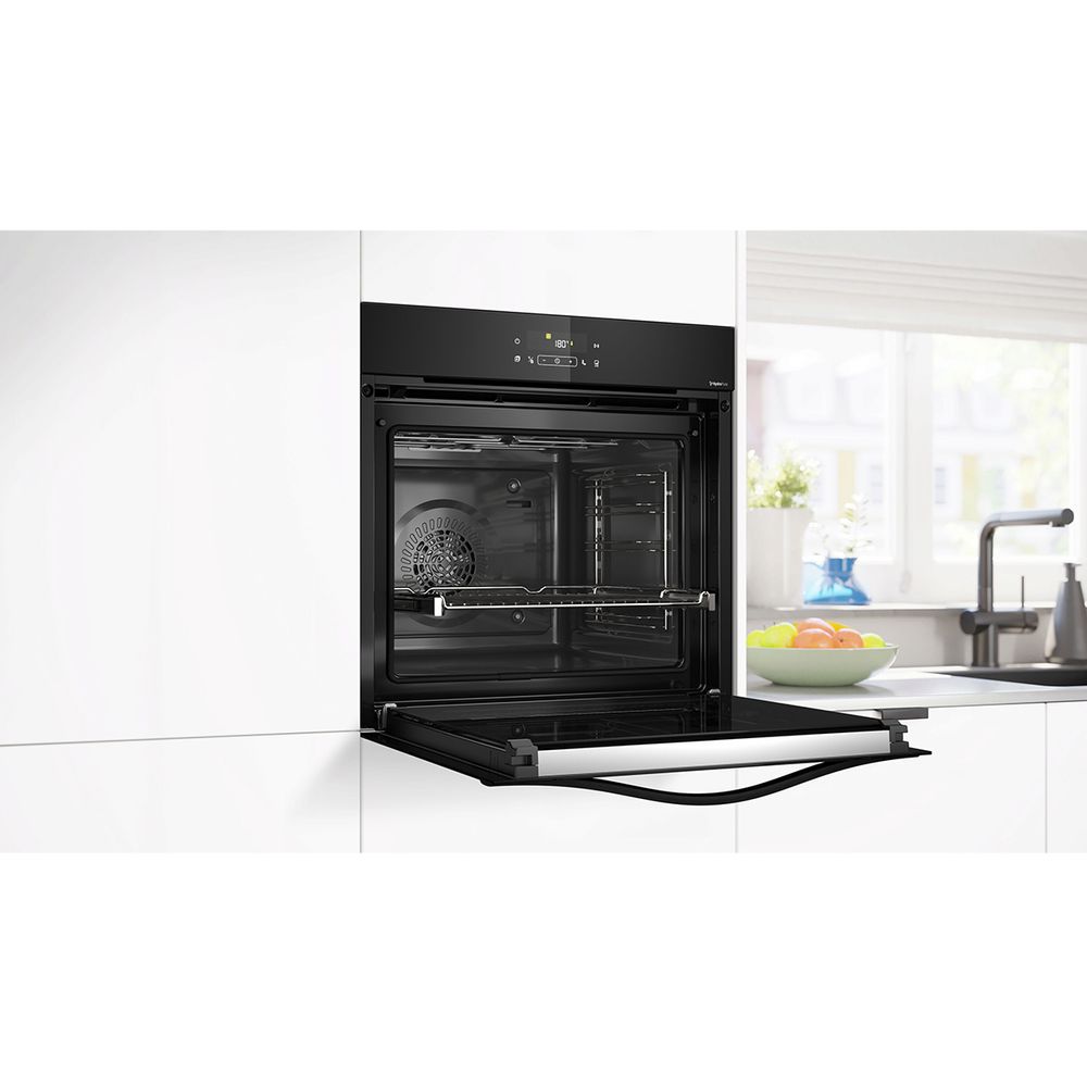 ThermoFlow για ταυτόχρονο μαγείρεμα σε 3 επίπεδα. Γρήγορη και αυτόματη προθέρμανση. Χαμηλή θερμοκρασία στην πόρτα κατά τη διάρκεια του πυρολυτικού καθαρισμού. Κρυστάλλινη εσωτερική επιφάνεια της πόρτας.