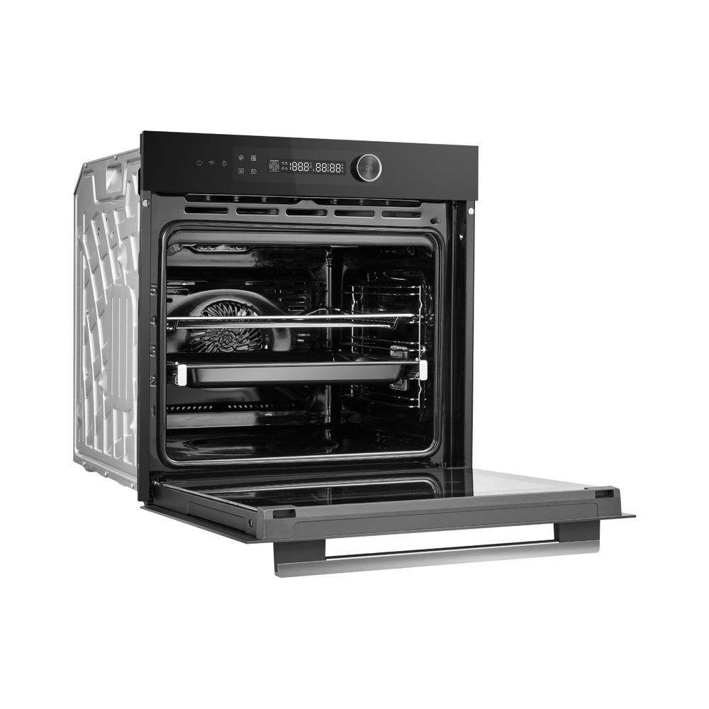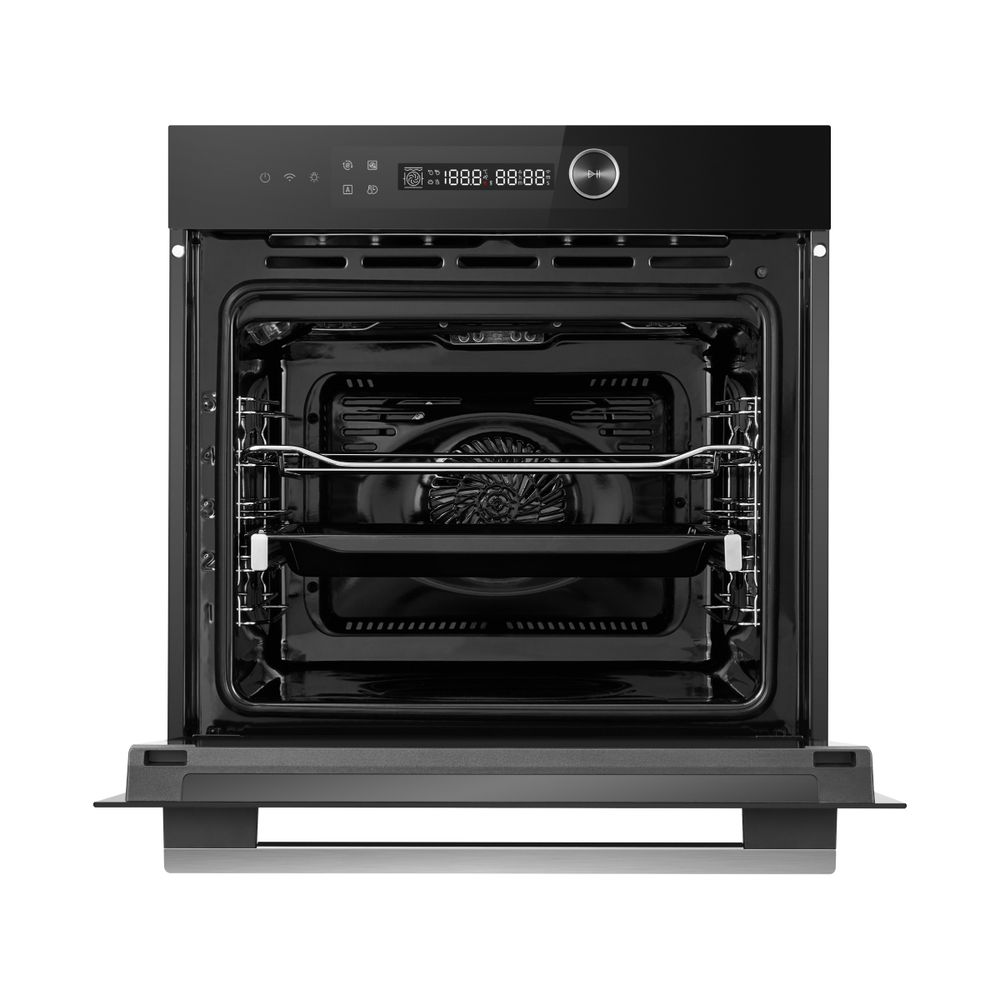 Ανοξείδωτοι οδηγοί κύλισης ταψιών, Αποσπώμενο 4πλό εσωτερικό κρύσταλλο για εύκολο καθάρισμα, Θερμόμετρο, Καλάθι Air Fryer, Σύνδεση με Smart Home App, Τηλεσκοπικός μηχανισμός κύλισης ταψιού, Φωτισμός Φούρνου : LED