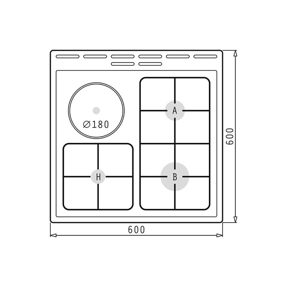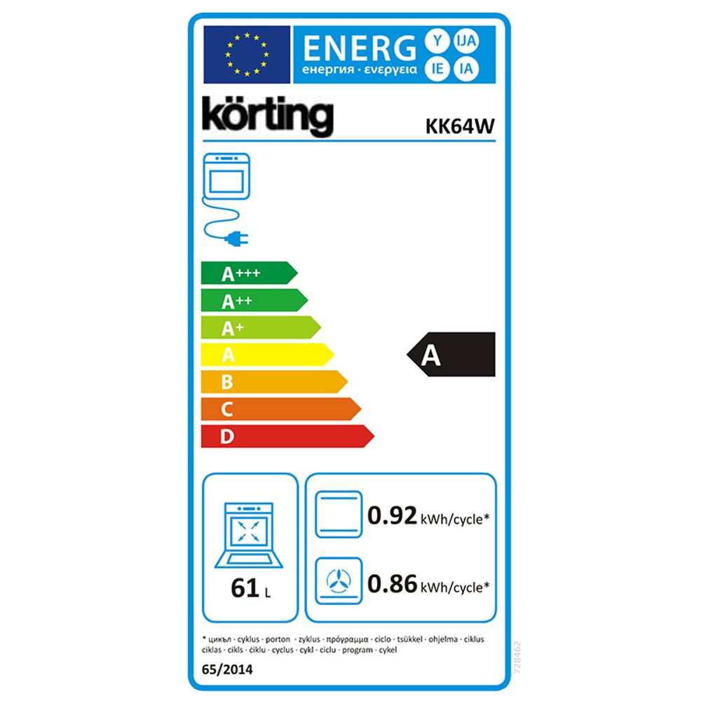 Κουζίνα μικτή Korting KK64W χωρητικότητας 61lt, ενεργειακής κλάσης Α, με διπλό κρύσταλλο στην πόρτα, μεταλλικό κάλυμμα εστιών και συρτάρι αποθήκευσης σκευών.