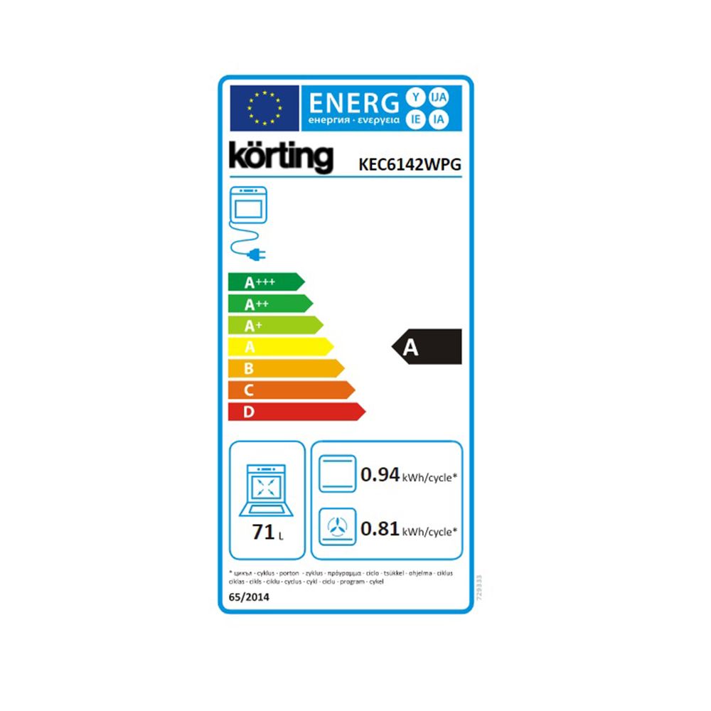 Κουζίνα κεραμική Korting KEC6142WPG χωρητικότητας 71lt, ενεργειακής κλάσης Α, με λειτουργία Aqua Clean και συρτάρι αποθήκευσης σκευών.