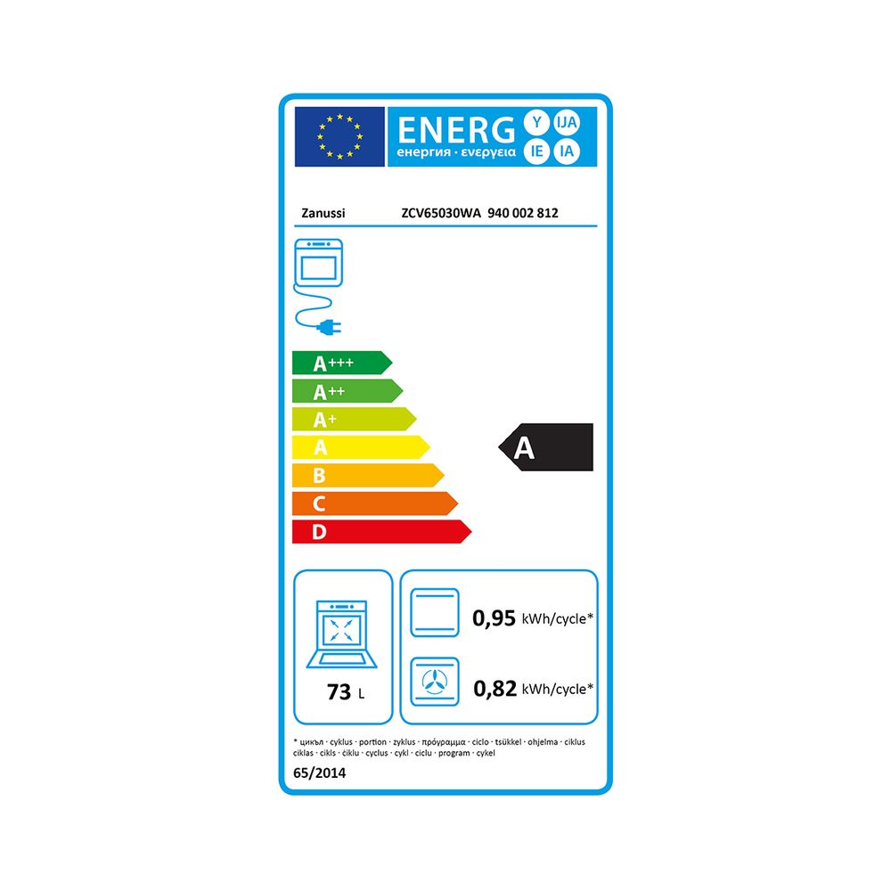 Κουζίνα κεραμική Zanussi ZCV65030WA χωρητικότητας 73 lt, ενεργειακής κλάσης Α, με 7 τρόπους λειτουργίας και μεγάλη χωρητικότητα για να μαγειρεύεις διαφορετικά φαγητά εξοικονομώντας χρόνο. Ακόμα, είναι εξοπλισμένη με 4 περιστροφικούς βυθιζόμενους διακόπτες για τον χειρισμό των ζωνών μαγειρέματος.