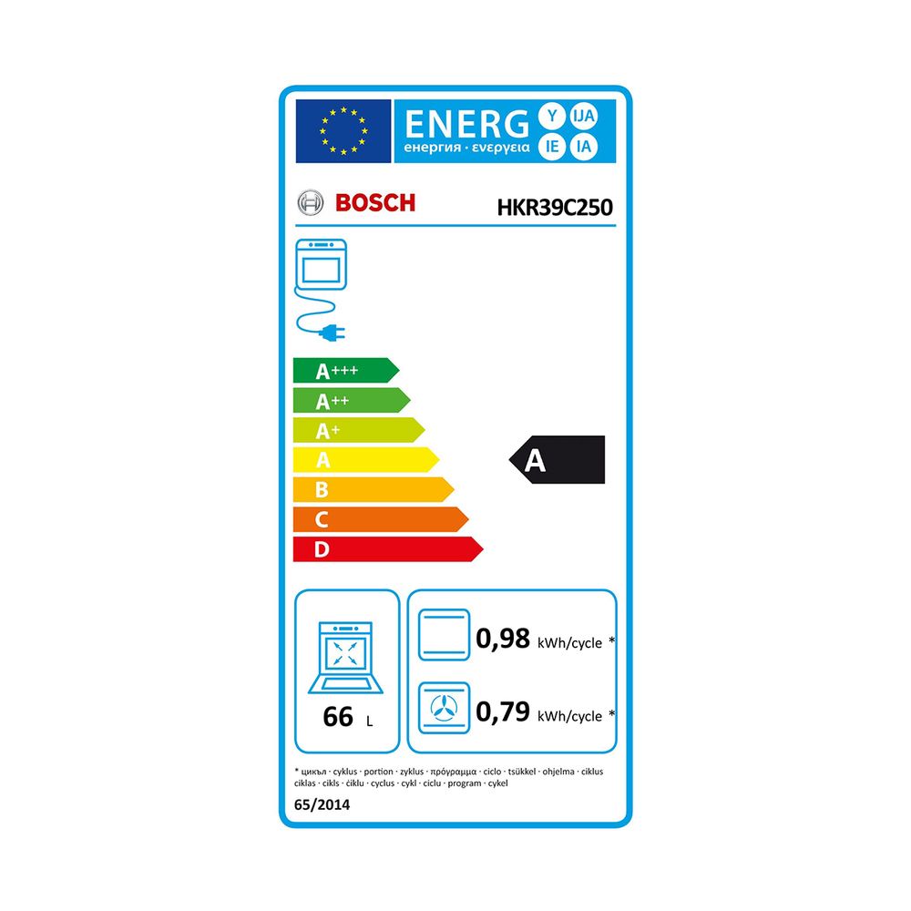 Κεραμική κουζίνα HKR39C250 της εταιρείας Bosch με χωρητικότητα φούρνου 66 lt, 4 κεραμικές εστίες καθώς και οθόνη ενδείξεων LED που προσφέρει ευκολία στη χρήση χάρη στις λειτουργίες προγραμματισμού χρόνου. Επιπλέον διαθέτει χωνευτούς διακόπτες, 3D Hotair για ομοιόμορφη κατανομή θερμότητας για τέλεια αποτελέσματα σε έως και τρία επίπεδα και καταλυτικό σύστημα καθαρισμού.