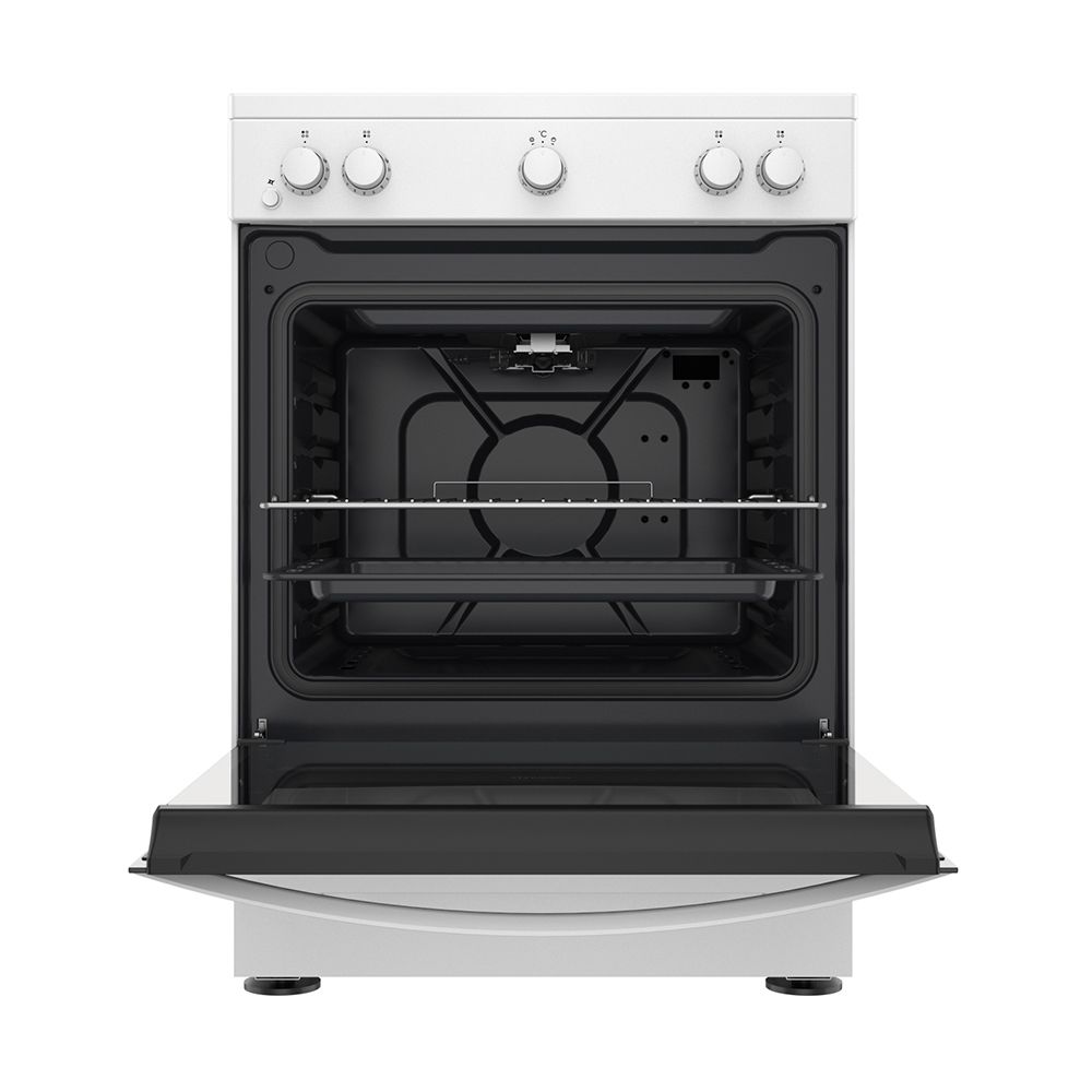 Ελεύθερη κουζίνα αερίου με 4 εστίες αερίου και φούρνο αερίου χωρητικότητας 71lt. Διαθέτει διπλό πανοραμικό τζάμι και σύστημα εύκολης αφαίρεσης τζαμιού πόρτας για άνετο καθαρισμό. Με σταθερούς διακόπτες και εσωτερικό φωτισμό αλογόνου για να παρακολουθείς το ψήσιμο.