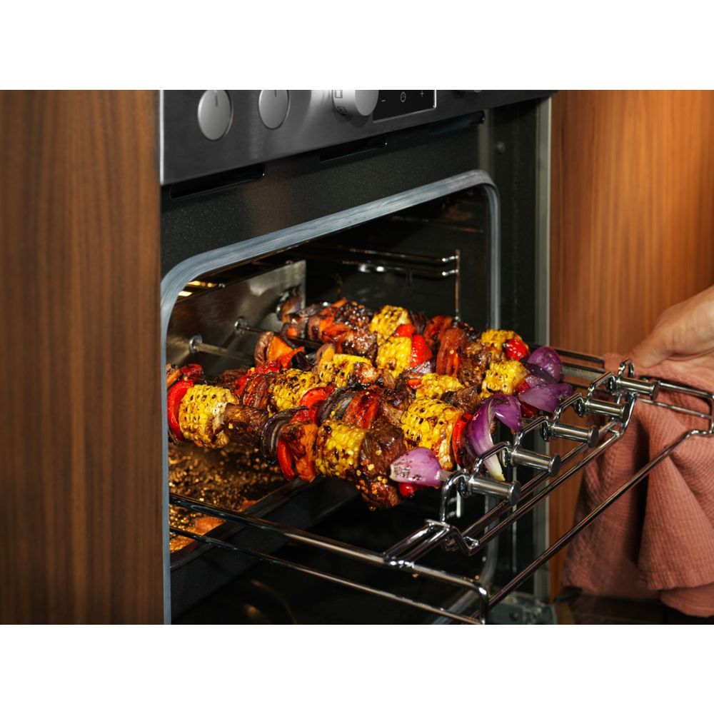 Κεραμική κουζίνα AEG με χωρητικότητα 73 lt, τηλεσκοπικούς βραχίονες και δυνατότητα για πολυεπίπεδο μαγείρεμα, χρονοδιακόπτη Led για ακριβή έλεγχο και εύκολο καθάρισμα του φούρνου χάρη στο Aqua Clean.