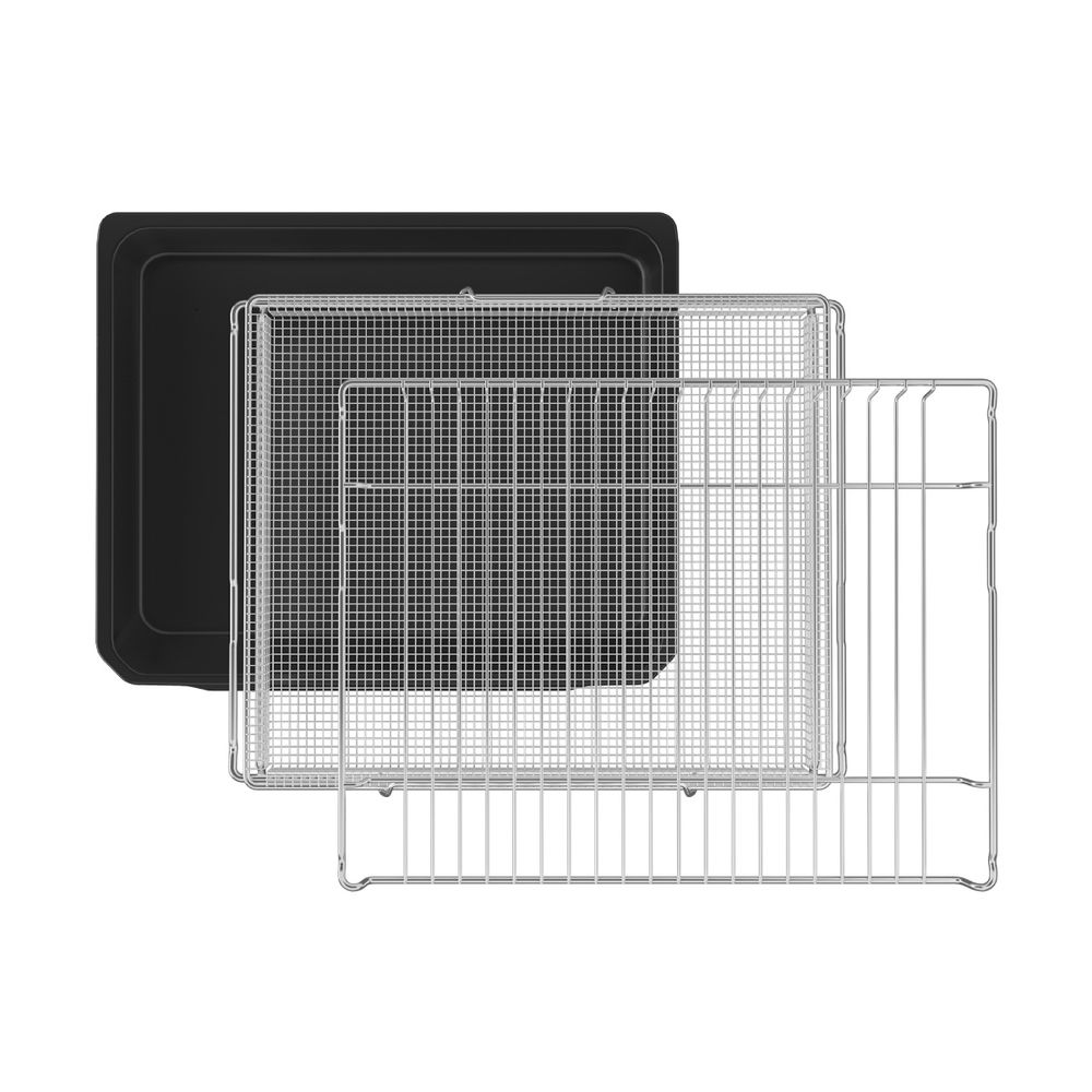 1 σχάρα ψησίματος, 1 αντικολλητικό ταψί, 1 Air Fry ταψί, τηλεσκοπικός μηχανισμός