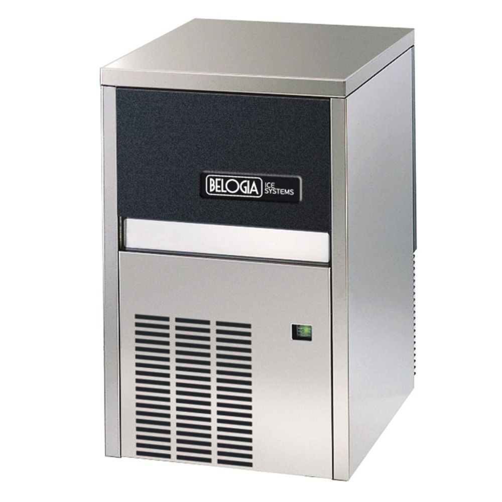 Παγομηχανή για συμπαγείς παγοκύβους με αποθήκη. Κυλινδρικό παγάκι με επίπεδη κορυφή και φαρδιά βάση και βάρος παγοκύβου 18gr.