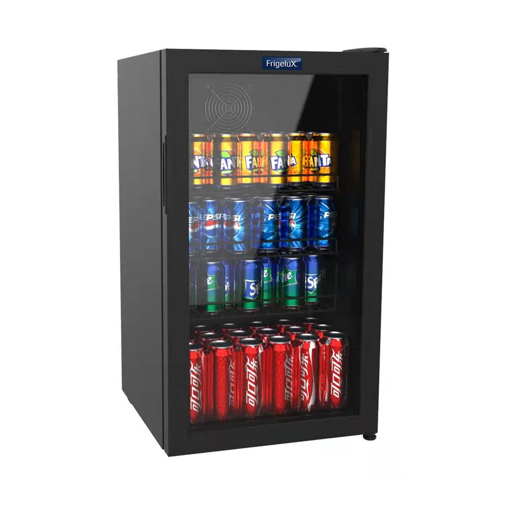 Ψυγείο βιτρίνα Frigelux χωρητικότητας 87 λίτρων. Χωράει 94 μικρά κουτιά αναψυκτικών ή 58 μπουκάλια. Χάρη στην γυάλινη πόρτα, μπορείς να επιδείξεις τα προϊόντα σου με ευκολία.