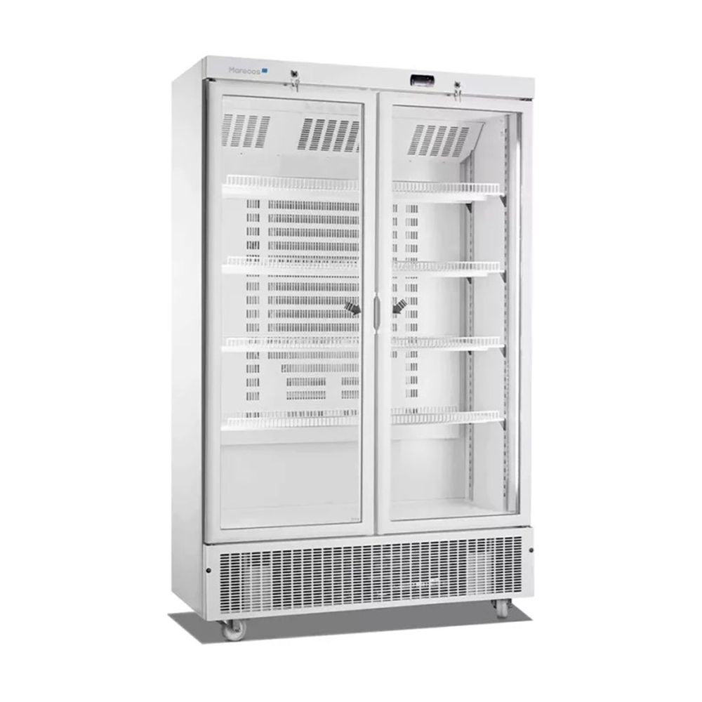 Επαγγελματικό ψυγείο βιτρίνα Marecos με διπλή ανασυρόμενη πόρτα και χωρητικότητα 585lt. Διαθέτει ηλεκτρονικό θερμοστάτη για ακριβή έλεγχο της θερμοκρασίας από 1°C έως 8°C, φωτισμό LED και 4 ράφια για άνετη οργάνωση των προϊόντων σου. Ο ιδανικός τρόπος να προβάλεις τα εμπορεύματά σου με στυλ και λειτουργικότητα.