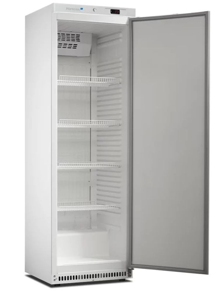 Επαγγελματικό ψυγείο Marecos με χωρητικότητα 308lt και ηλεκτρονικό θερμοστάτη για ακριβή έλεγχο της θερμοκρασίας. Διαθέτει οθόνη ενδείξεων και δυναμική ψύξη για ομοιόμορφη κατανομή του ψύχους. Με δυνατότητα αλλαγής φοράς της πόρτας, προσαρμόζεται εύκολα στον επαγγελματικό σου χώρο. Οι διαστάσεις του (186 × 59 × 64.5 εκ.) το καθιστούν ιδανικό για χώρους με περιορισμένο πλάτος.