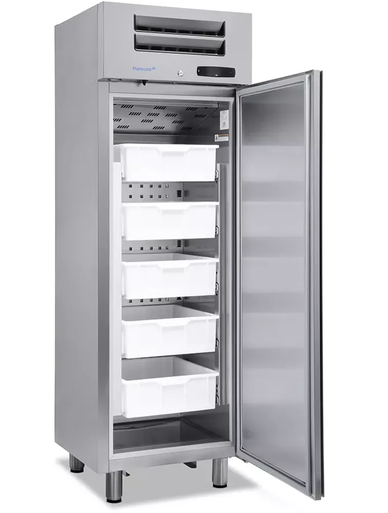 Επαγγελματικός θάλαμος συντήρησης ψαριών Marecos με χωρητικότητα 270lt και ηλεκτρονικό θερμοστάτη για ακριβή έλεγχο θερμοκρασίας. Διαθέτει 5 ράφια και οθόνη ενδείξεων για εύκολη παρακολούθηση της λειτουργίας. Με δυνατότητα αλλαγής φοράς πόρτας για μεγαλύτερη ευελιξία στην τοποθέτηση, προσφέρει αξιόπιστη επαγγελματική ψύξη για τις ανάγκες της επιχείρησής σου.