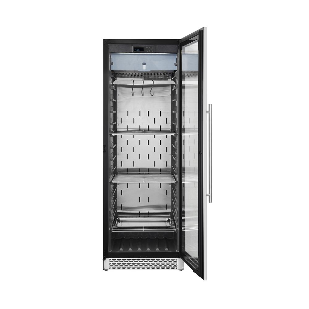 Ψυγείο ωρίμανσης Frigelux χωρητικότητας 352lt με ηλεκτρονικό έλεγχο θερμοκρασίας και υγρασίας με control panel αφής. Διαθέτει γυάλινη αντιστρεφόμενη πόρτα, και λάμπα αποστείρωσης UV, ενώ η θερμοκρασία ρυθμίζεται μεταξύ 1 και 25 βαθμούς.