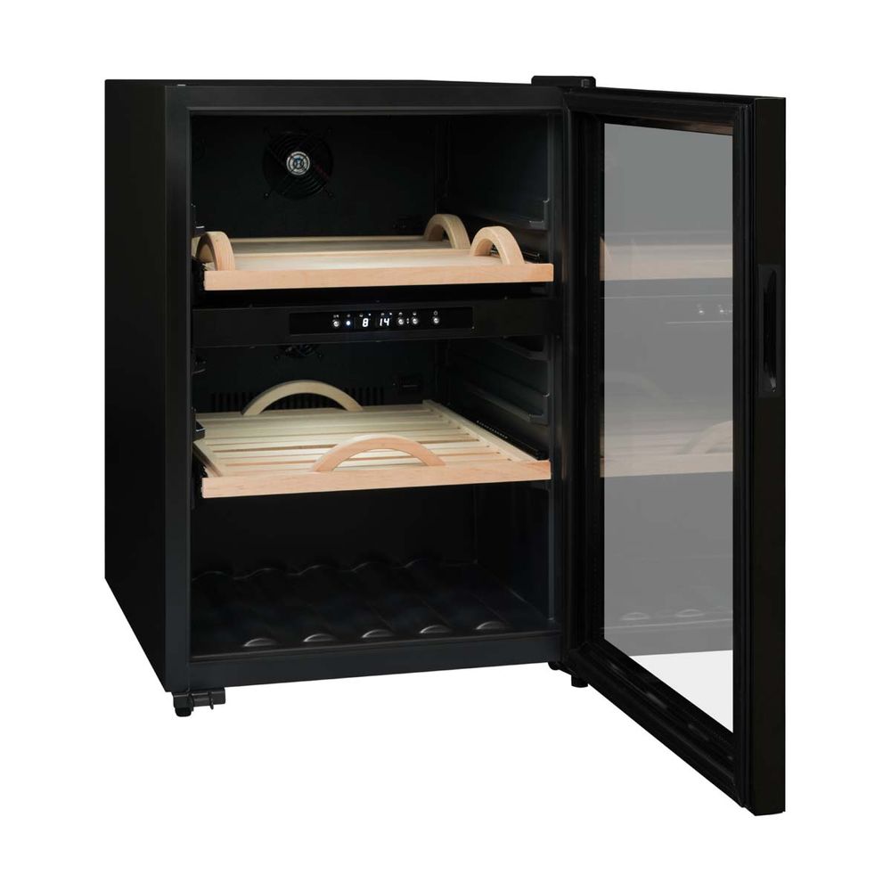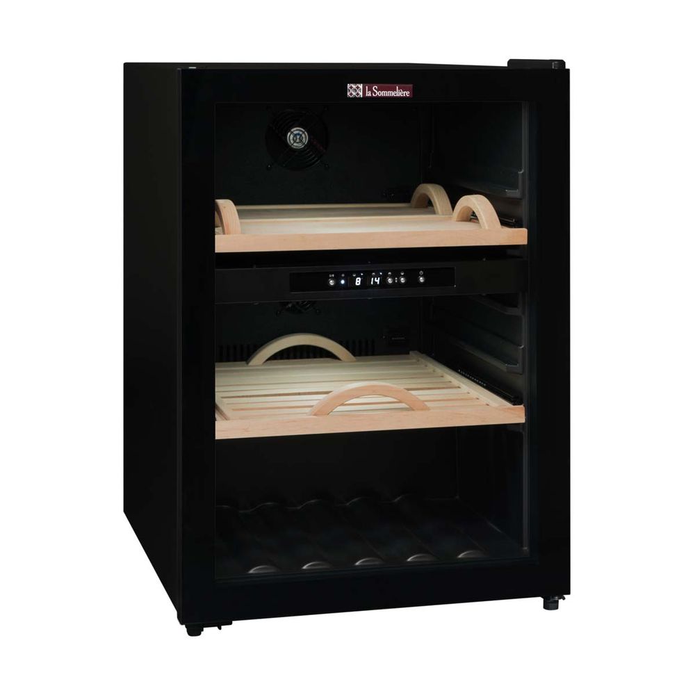 Συντηρητής τυριών La Sommelière δύο διαμερισμάτων, χωρητικότητας 168lt με διαφανή πόρτα και φωτισμό LED για να προβάλλεις βέλτιστα τα προϊόντα σου. Ρυθμίζεται σε εύρος θερμοκρασίας 5-20 βαθμούς και έχει αθόρυβη λειτουργία 42db.