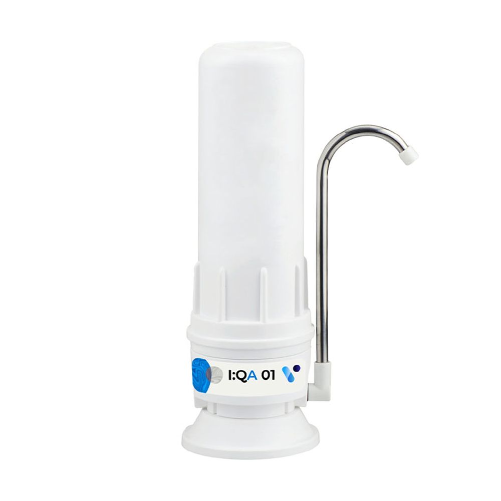 H σειρά φίλτρων I:Q A ξεχωρίζει καθώς περιλαμβάνει τα τελευταίας τεχνολογίας φίλτρα Quick, για μέγιστη ευκολία στην αντικατάσταση τους. Το I:QA 01 UP είναι φίλτρο πάγκου που προσαρμόζεται εύκολα στην βρύση σου. Το κέλυφός του είναι από πολυπροπυλένιο με διπλό λάστιχο στεγάνωσης. Περιέχει ενσωματωμένο βρυσάκι, Kit εγκατάστασης με αντάπτορα βρύσης και εύκαμπτο σωληνάκι 3/8″.