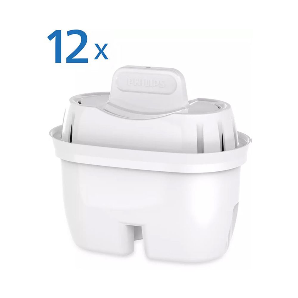Σετ 12 ανταλλακτικών φίλτρων Philips AWP213 με τεχνολογία Micro X-Clean. Μειώνουν αποτελεσματικά το χλώριο, τα μικροπλαστικά και άλλους ρύπους, βελτιώνοντας τη γεύση και την ποιότητα του νερού στην κανάτα σου