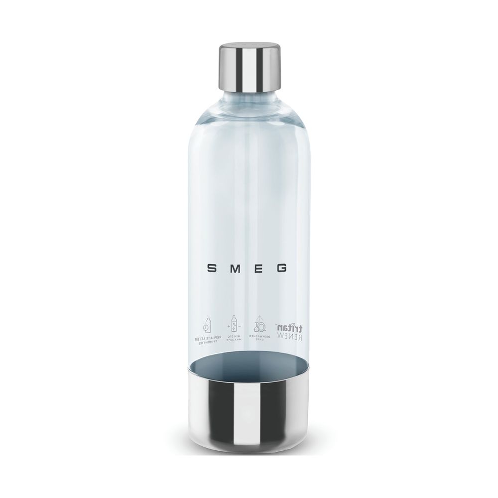 Απόλαυσε φρέσκο ανθρακούχο νερό στο σπίτι με τη φιάλη Smeg SKSB01. Κατασκευασμένη από ανθεκτικό πλαστικό Tritan Renew, με πάτο και καπάκι από γυαλιστερό ανοξείδωτο ατσάλι, είναι ασφαλής για πλύσιμο στο πλυντήριο πιάτων. Συμβατή με όλους τους παρασκευαστές σόδας Smeg, προσφέρει πρακτικότητα και αξιοπιστία, ιδανική για καθημερινή χρήση.