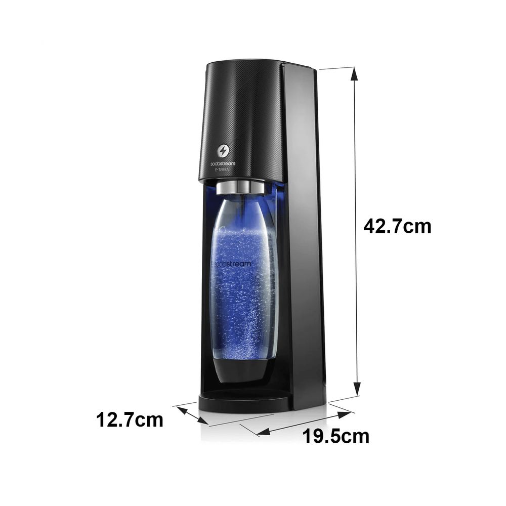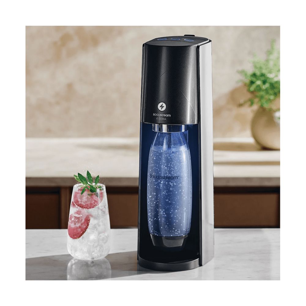Με το Sodastream E-Terra Black μετατρέπεις το απλό νερό σε φρέσκο ανθρακούχο με το πάτημα ενός κουμπιού! Οικολογικό, οικονομικό και εύχρηστο, σου επιτρέπει να φτιάξεις δροσιστικά ποτά ή κοκτέιλ με σιρόπι, όπου κι αν βρίσκεσαι. Απόλαυσε γεύση και φρεσκάδα στη στιγμή.