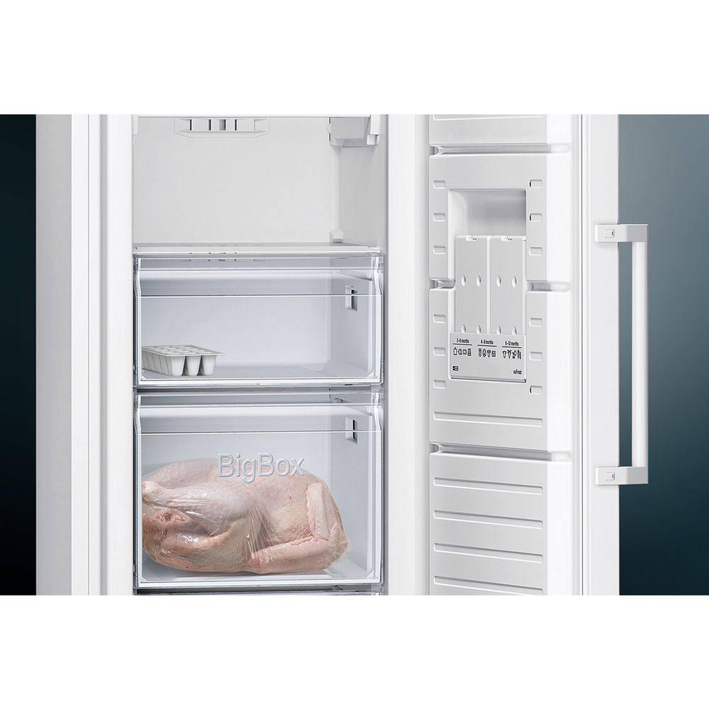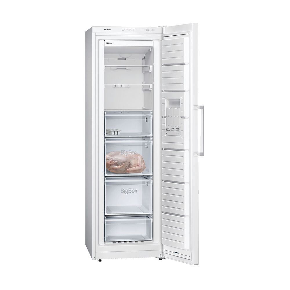 Με τον καταψύκτη iQ300 GS36NVWFP της Siemens ξέχνα μια για πάντα την απόψυξη! Η καινοτόμα τεχνολογία του Full No Frost εμποδίζει τη δημιουργία πάγου και αποτρέπει το πάγωμα των τροφίμων. Διαθέτει διαφανή συρτάρια και γυάλινα ράφια που αφαιρούνται εύκολα και σύστημα VarioZone για οργάνωση του χώρου με ευελιξία. Το σύστημα multiAlarm σε ειδοποιεί με οπτική και ηχητική ένδειξη εάν η θερμοκρασία αυξηθεί, ενώ χάρη στο multiAirflow εξασφαλίζεται ομοιόμορφη ψύξη σε όλα τα επίπεδα.