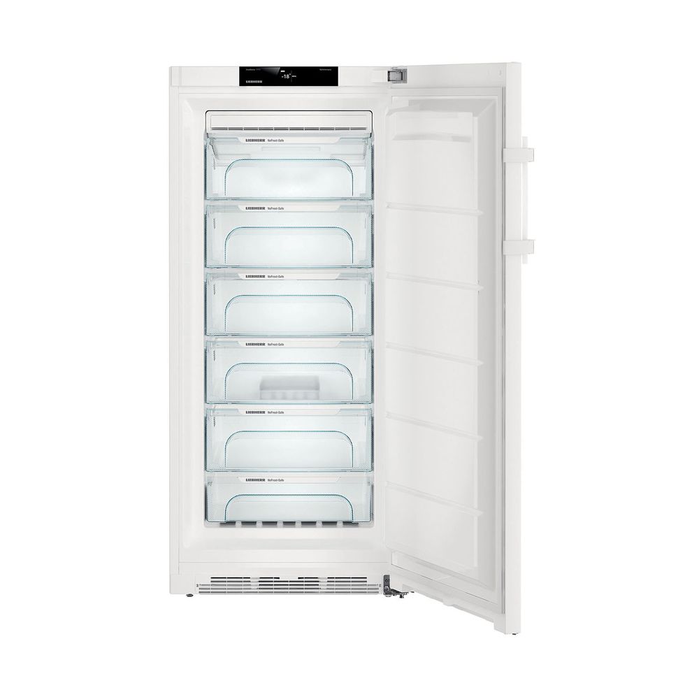 Κάθετος ελεύθερος καταψύκτης 70cm Liebherr GN 4135, λευκού χρώματος, με NoFrost τύπο ψύξης, μικτή χωρητικότητα 270lt, οθόνη ενδείξεων και 6 συρτάρια.