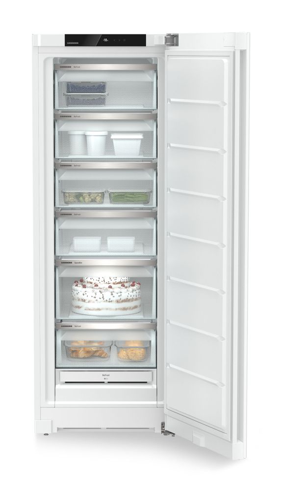 Καταψύκτης Liebherr χωρητικότητας 238 lt με οθόνη αφής και τεχνολογία NoFrost που περιορίζει σημαντικά το σχηματισμό πάγου στον εσωτερικό χώρο και τα κατεψυγμένα τρόφιμα. Χάρη στην κάθετη εσοχή ανοίγεις την συσκευή πολύ εύκολα.