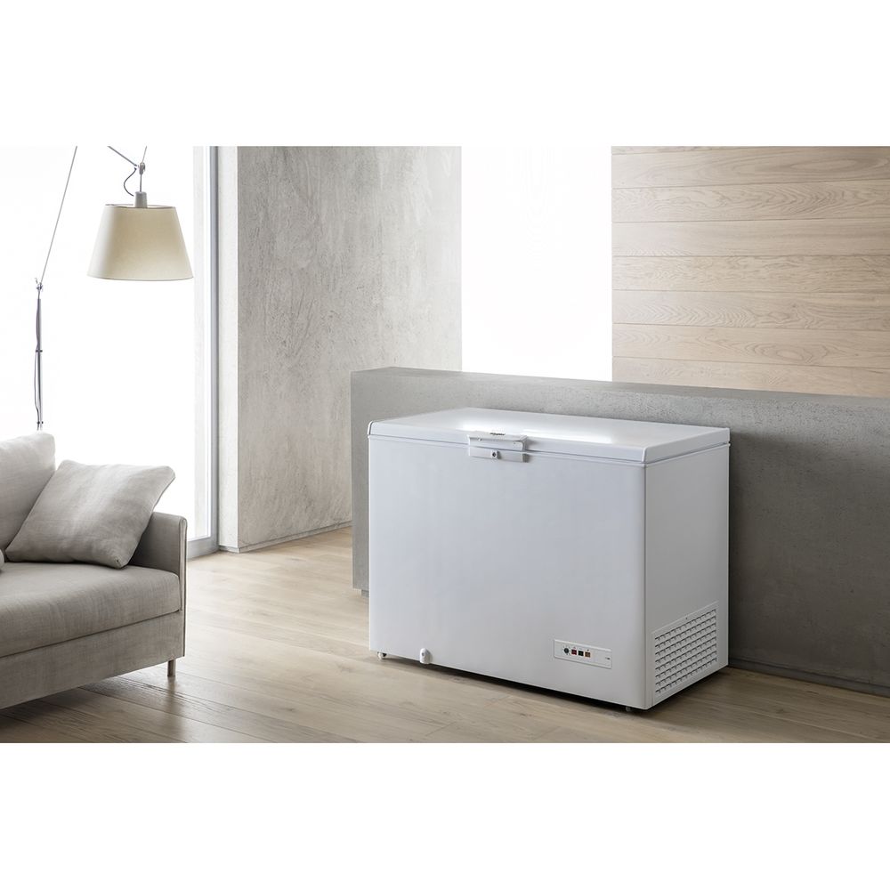 Καταψύκτης μπαούλο Whirlpool με χωρητικότητα 315lt, λειτουργία Fast Freeze που ρυθμίζει τη θερμοκρασία του καταψύκτη 10 βαθμούς πιο χαμηλά από τη χαμηλότερη ρύθμιση, σύστημα Space Max, εσωτερικό LED φωτισμό και αποστράγγιση νερού απόψυξης. Επιπλέον, διαθέτει 2 ενσωματωμένα ροδάκια για εύκολη μετακίνηση.