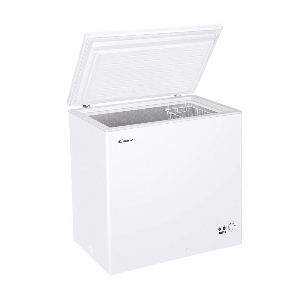 Καταψύκτης μπαούλο Candy με χωρητικότητα 196 lt, εργονομική και λειτουργική λαβή, μεταλλικό συρμάτινο καλάθι οργάνωση, μηχανικό θερμοστάτη, κατασκευασμένο να διατηρεί τα τρόφιμα για έως και 15 ώρες σε περίπτωση διακοπής ρεύματος.