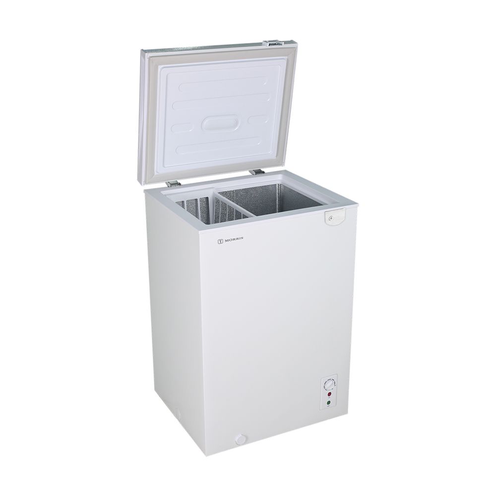 Καταψύκτης μπαούλο Morris W70099EMD, 4 αστέρων, διπλής λειτουργίας, με χωρητικότητα 99lt, μηχανικά ρυθμιζόμενο έλεγχο θερμοκρασίας, εσωτερικό φωτισμό Led, ένα πλαστικό καλάθι και χρόνο αυτονομίας 8.5 ώρες σε περίπτωση διακοπής ρεύματος.\n