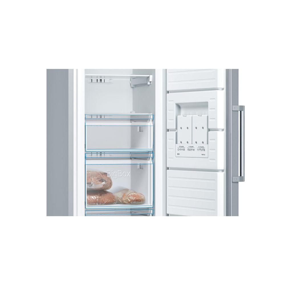 Με τον BOSCH GSN36VIEP ξεχνάς την απόψυξη χάρη στην τεχνολογία No Frost. Οργάνωσε τα πάντα με το VarioZone και το ευρύχωρο συρτάρι BigBox. Ειδοποιείσαι αν η πόρτα μείνει ανοιχτή και με το SuperFreezing προστατεύεις τα κατεψυγμένα τρόφιμα από την απόψυξη.