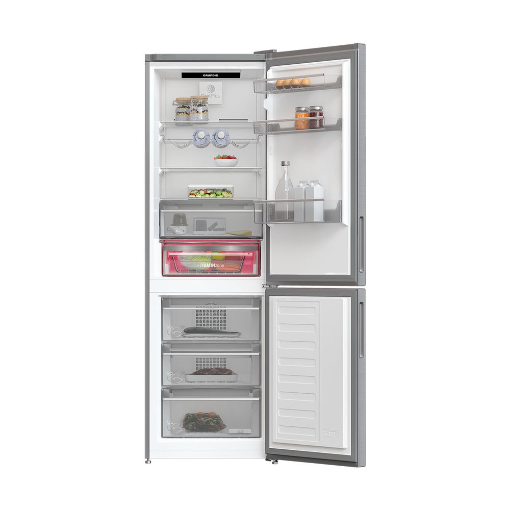 Ψυγειοκαταψύκτης Grundig GKN 26840 XPN 60cm με Full No Frost τύπο ψύξης, ανοξείδωτου χρώματος, μικτής χωρητικότητας 324lt, με δυνατότητα αλλαγής φοράς πόρτας, αυτόματη ρύθμιση θερμοκρασίας με ρυθμιζόμενο θερμοστάτη, μπουκαλοθήκη στην πόρτα, συρτάρι συντήρησης φρούτων και λαχανικών και συρτάρι συντήρησης για κρέας και ψάρι.