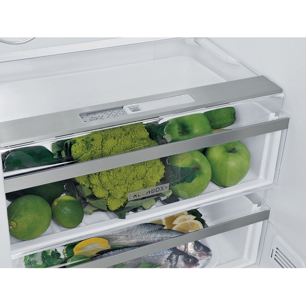 Ψυγειοκαταψύκτης 60 cm με συνολική μικτή χωρητικότητα 407 lt, τεχνολογία Total No Frost για τέλεια διατήρηση των τροφίμων με αυτόματη απόψυξη και τεχνολογία 6th Sense με αισθητήρες που ρυθμίζουν τη θερμοκρασία και την υγρασία. Το συρτάρι Fresh Box 0°C είναι το ιδανικό περιβάλλον αποθήκευσης για το φρέσκο κρέας, ψάρι και γαλακτοκομικά, διατηρώντας συνεχώς τη θερμοκρασία σε σταθερό επίπεδο και διαφυλάσσοντας έτσι τη γεύση, την υφή και τη θρεπτική αξία των τροφίμων.