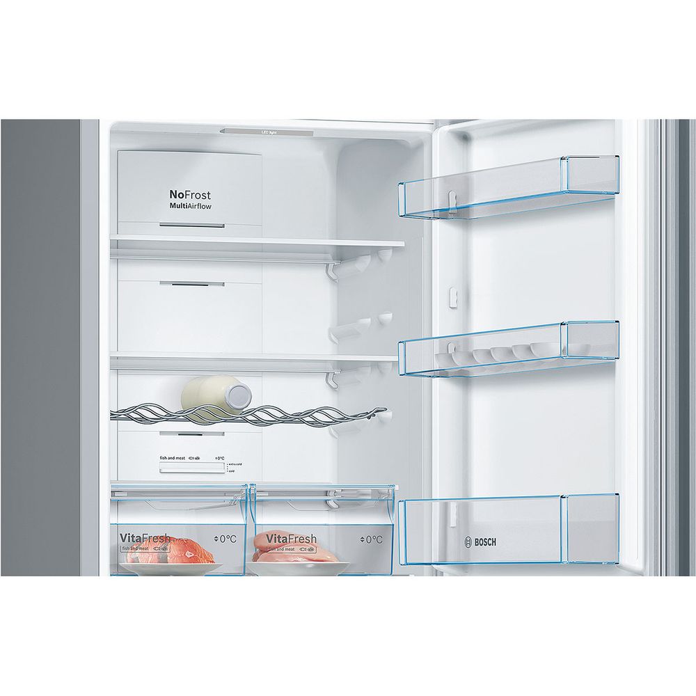 Ελεύθερος ψυγειοκαταψύκτης Bosch KGN36VID Inox Antifinger με τεχνολογία Full NoFrost με VitaFresh για να τα διατηρεί όλα, τέλεια και φρέσκα για ακόμη μεγαλύτερο χρονικό διάστημα.\n