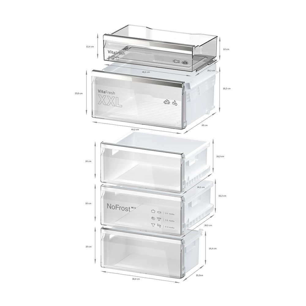 Κλάση Α, Χαμηλό επίπεδο θορύβου, Σύστημα VitaFresh XXL <0°C>, NoFrost, Μεταλλική πλάτη με τεχνολογία MultiAirflow, Ευέλικτο εσωτερικό, Τέλεια εφαρμογή