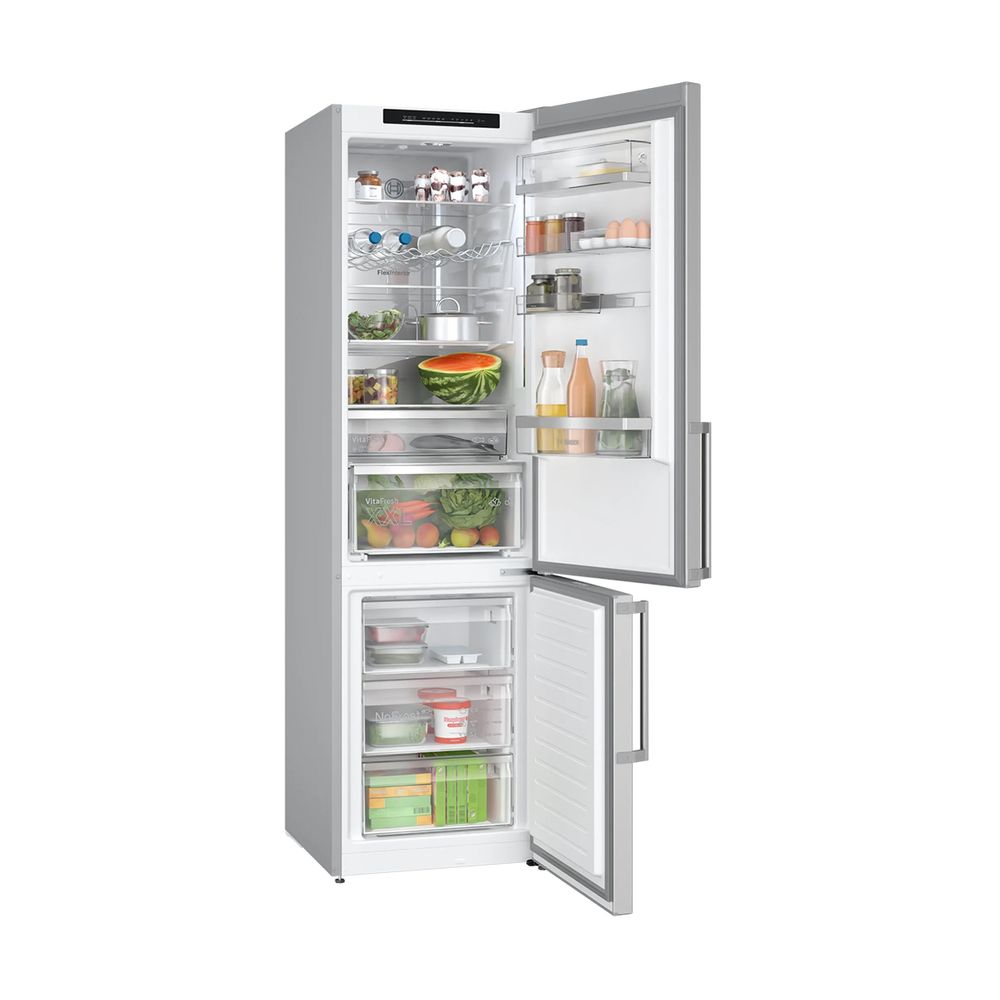 Ψυγειοκαταψύκτης KGN39AIAT Inox από την εταιρεία Bosch με καθαρή συνολική χωρητικότητα 363lt, τεχνολογία Full No Frost για να μην χρειαστεί να κάνεις ποτέ απόψυξη ξανά, χώρο αποθήκευσης VitaFresh XXL καθώς και εσωτερικό φωτισμό LED για να βλέπεις ξεκάθαρα τα τρόφιμά σου.