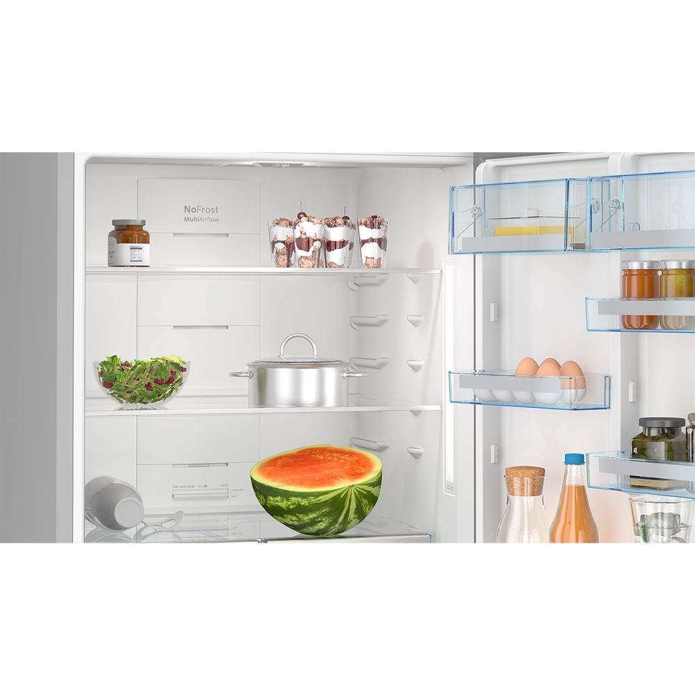 Ο ελεύθερος ψυγειοκαταψύκτης Inox Antifinger KGN76AIDR της Bosch με χωρητικότητα κατάψυξης: 120 lt και ψύξης: 406 lt χωράει όλα σου τα τρόφιμα με άνεση και τα διατηρεί στις πιο ιδανικές συνθήκες χάρη στην τεχνολογία Dynamic MultiAirFlow και VitaFresh. Η ανάγκη για απόψυξη καταργείται χάρη στην τεχνολογία Full NoFrost, ενώ απολαμβάνεις τεράστια ευελιξία με τα γυάλινα ράφια και τα συρτάρια πολλαπλών χρήσεων. Διαθέτει, επίσης, λυχνία LED που φωτίζει το ψυγείο ομοιόμορφα.