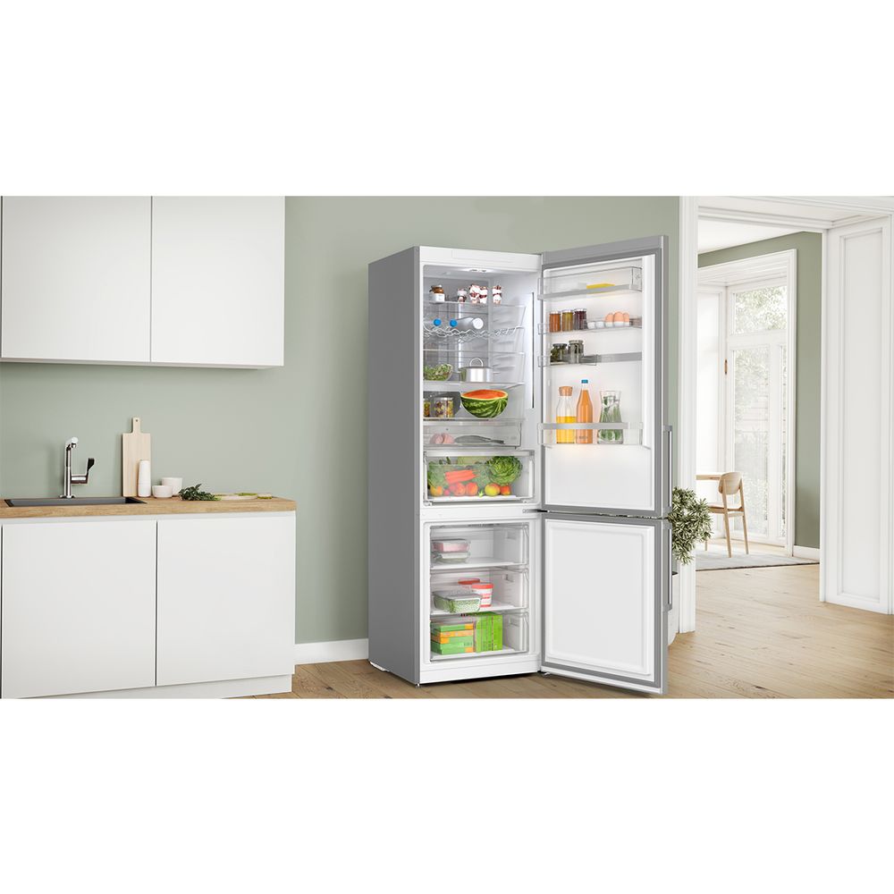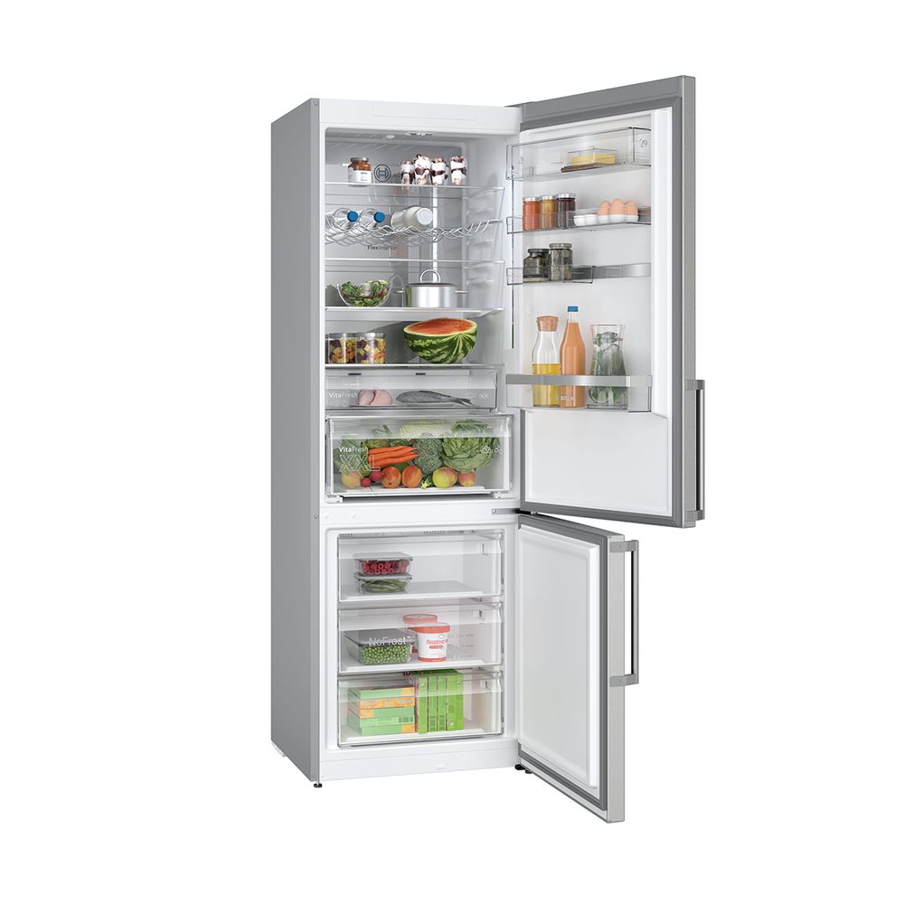 Ο ελεύθερος ψυγειοκαταψύκτης Inox Antifinger KGN49AIBT της Bosch με χωρητικότητα κατάψυξης: 129 lt και ψύξης: 311 lt χωράει όλα σου τα τρόφιμα με άνεση και τα διατηρεί στις πιο ιδανικές συνθήκες χάρη στην τεχνολογία MultiAirFlow και VitaFresh XXL. Η ανάγκη για απόψυξη καταργείται χάρη στην τεχνολογία NoFrost, ενώ απολαμβάνεις τεράστια ευελιξία με τα γυάλινα ράφια και τα συρτάρια πολλαπλών χρήσεων. Διαθέτει, επίσης, λυχνία LED που φωτίζει το ψυγείο ομοιόμορφα.